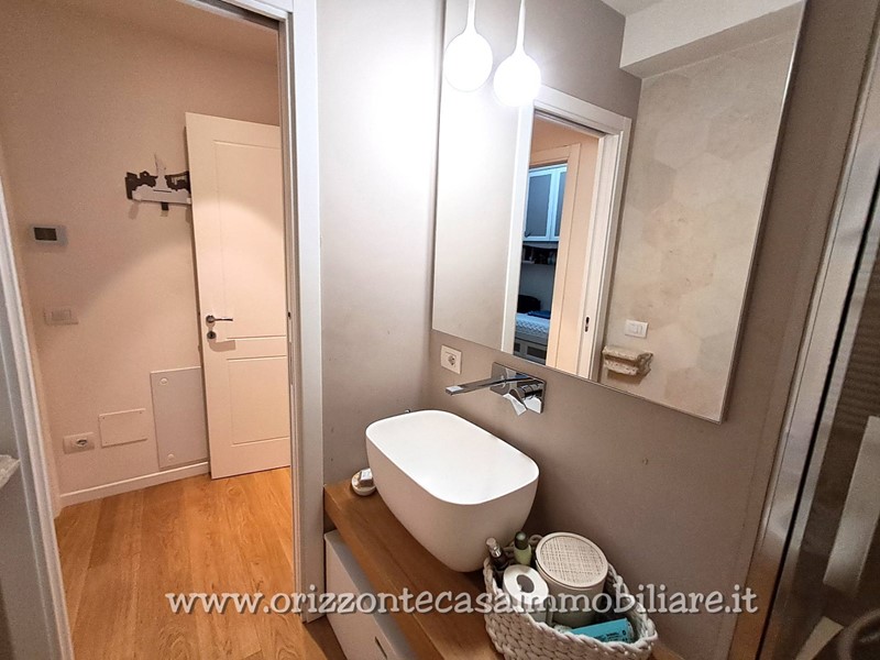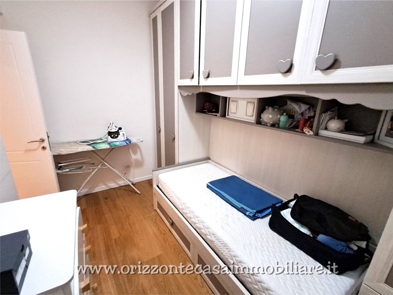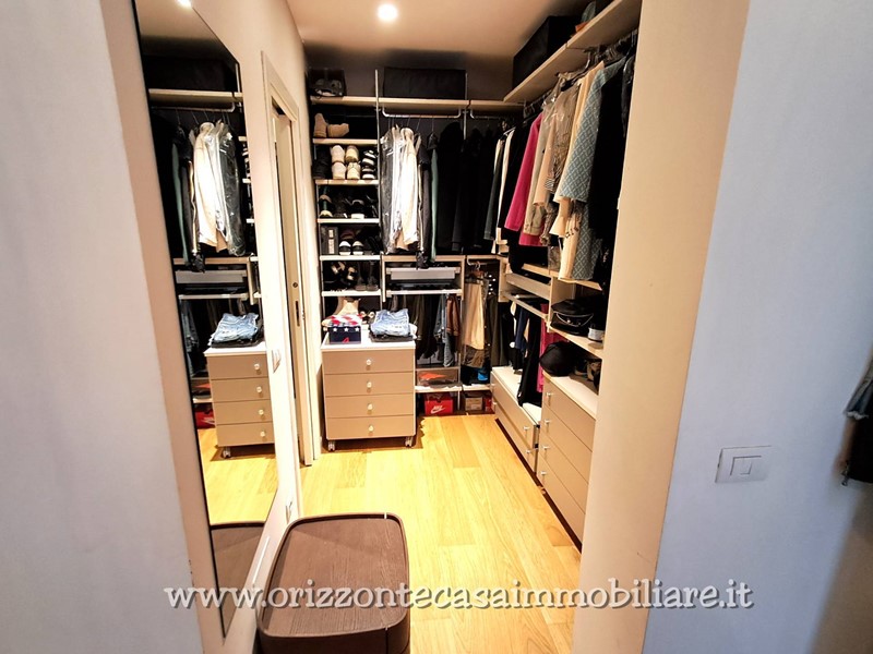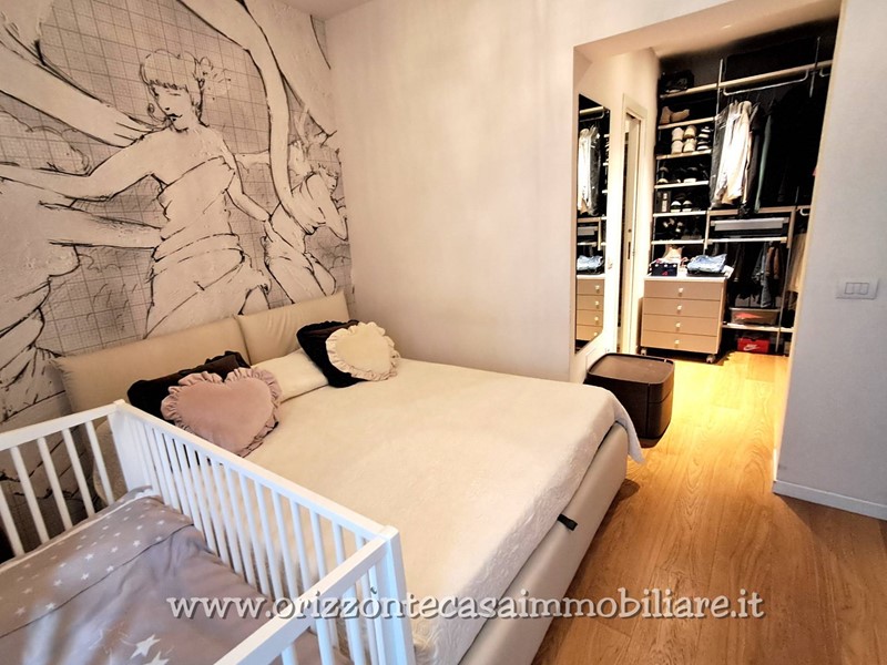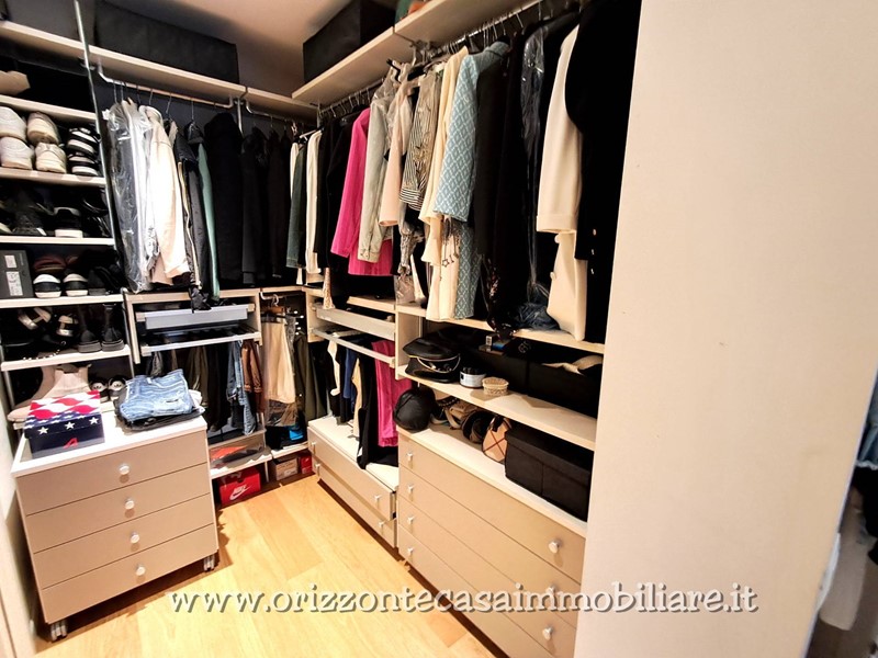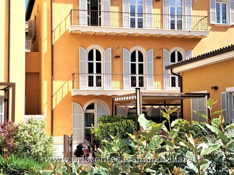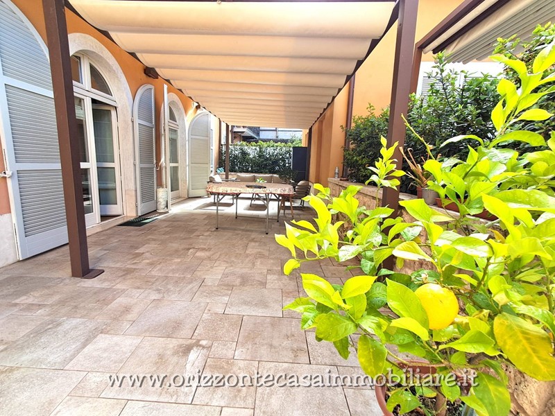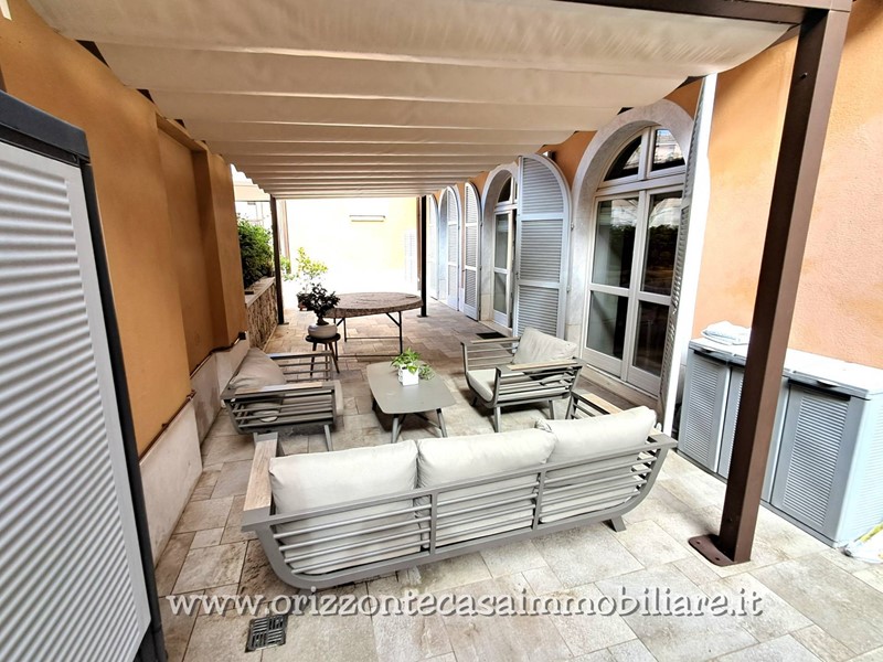 L'appartamento è composto da ingresso su ampio e luminoso soggiorno con cucina a vista, una camera matrimoniale con cabina armadio e bagno in camera, una camera singola, un ripostiglio ed un secondo bagno. Da ogni locale si può accedere alla corte esterna di proprietà pavimentata e completamente delimitata con recinzione; nella corte esterna è presente una elegante pergola che funge da copertura.