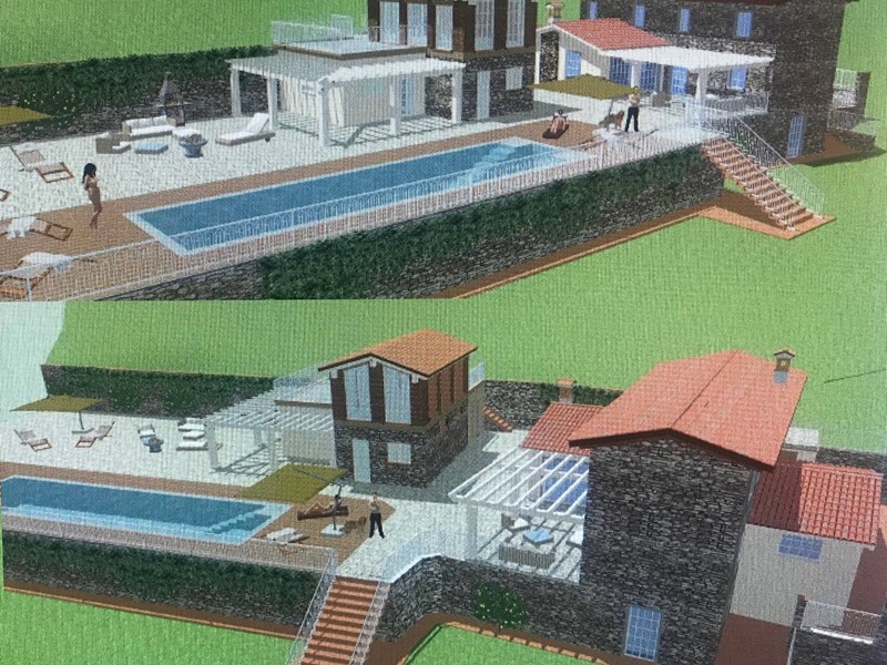 Situata sulle colline tra Corsanico e Pedona, bella proprietà che domina la vallata verso Camaiore. Immersa nella natura, casa rustica con depandance allo stato grezzo immersa in terreno di 14.000 mq con circa 12.000 mq di uliveto e circa 300 piante di olivo. Ogni anno vengono prodotti circa 250 litri dell'olio. La proprietà dista 20 minuti di auto dalla spiaggia e 10 minuti dal paese di Camaiore, 20 minuti da Lucca, 20 minuti da Forte dei Marmi, 30 minuti da Pisa e 15 minuti da Viareggio. Nelle vicinanze ci sono solo 6 proprietà, risulta una zona molto tranquilla circondata da boschi. Il casale principale è già parzialmente ristrutturato (tetto nuovo, controsoffitti nuovi, facciate in pietra ristrutturate), mancano eventuali ampliamenti, gli impianti elettrico ed idrico e le finiture di dettaglio. La depandance deve ancora essere completamente ristrutturata con 2 camere + bagno ( possibilità di un fantastico monolocale al primo piano con terrazza di 35 mq e splendida vista sulle montagne). Acqua ed elettricità già portate alla proprietà. Esiste un progetto di massima, come da foto allegata con planimetrie eventualmente modificabile. Disponibilità di giardiniere fidato per curare terreno e piante presenti nella proprietà. Prezzo trattabile.