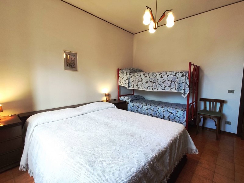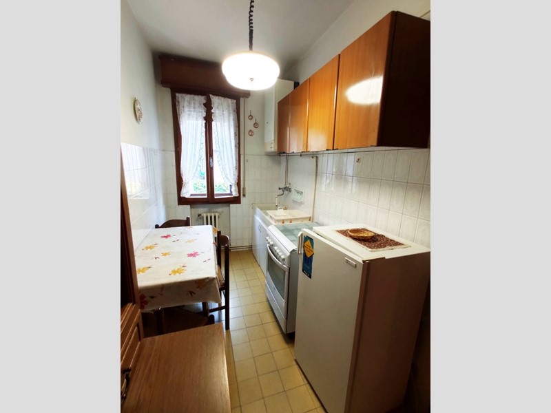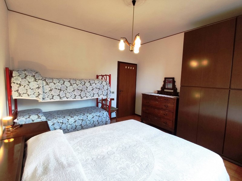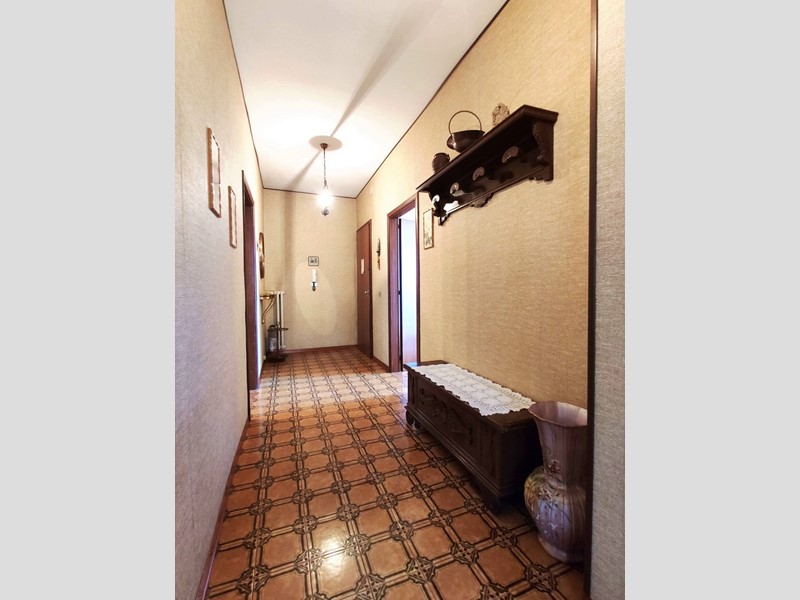 Questo appartamento è situato al terzo piano ed è dotato di ampia cantina di garage privato. Dall'ingresso si accede direttamente al tinello con tavolo da pranzo e da li all'adiacente cucinotto dove è situata la caldaia autonoma a gas metano che fornisce il riscaldamento e l'acqua calda. Proseguendo si incontra la prima camera matrimoniale che precedentemente era una sala da pranzo con tanto di predisposizione per la canna fumaria per l'eventuale istallazione di una stufa/camino. Mediante il corridoio disimpegno si raggiungono le altre due camere matrimoniali, una delle quali dotata di balcone panoramico. Un bagno/lavanderia con vasca completa l'appartamento. Al piano terra è presente un comodo garage collegato ad una ampia cantina. Il riscaldamento è autonomo a gas metano così come le altre utenze. La posizione è comoda al centro del paese ed alla viabilità principale. Ottima soluzione sia come prima residenza che come seconda casa a pochi passi dal centro storico. Per ulteriori informazioni: 328-9507360 - Stefano Zanarini - studiocimone@gmail.com