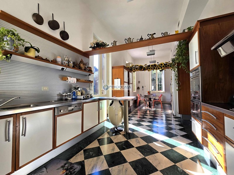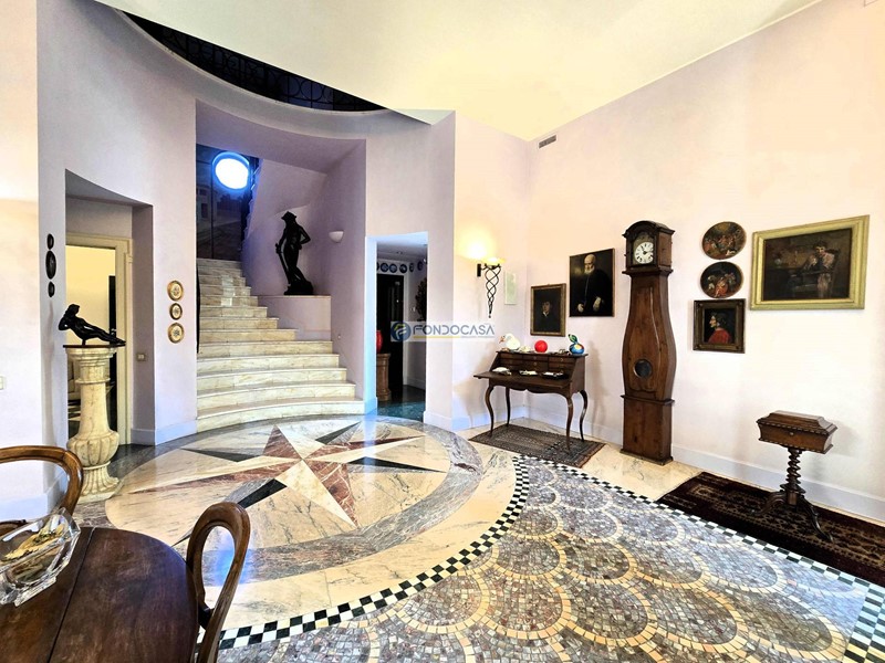 L'ingresso principale, imponente e maestoso, introduce nell'ampio e luminoso soggiorno impreziosito da marmi di assoluto pregio, perfetto per accogliere ospiti e familiari in momenti di convivialità; la zona living prosegue con unaccogliente e generosa cucina con sala da pranzo con piacevolissimo sfogo verso lesterno.