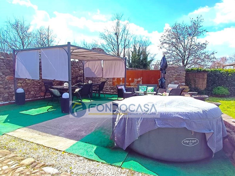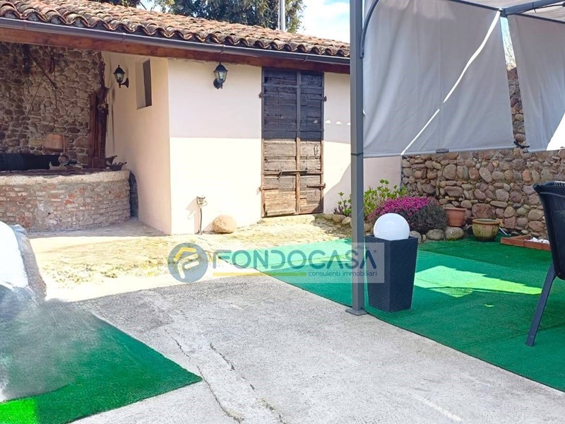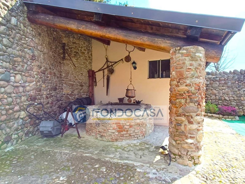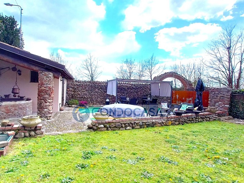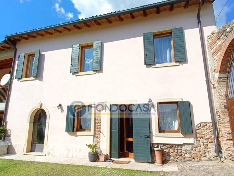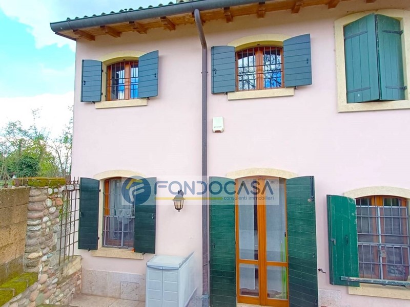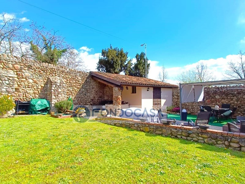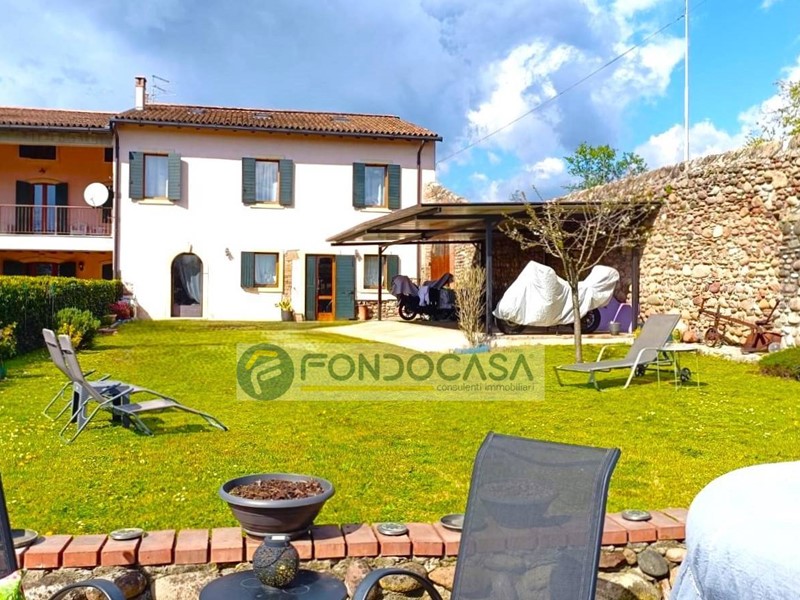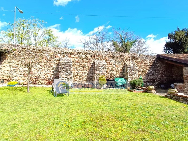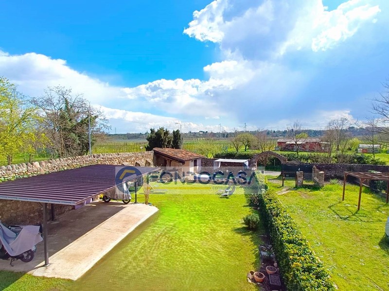 RUSTICO TERRA CIELO RISTRUTTURATO. Vallaon, località di Bussolengo, in zona tranquilla circondata da una vasta campagna, a soli 4 km da Bussolengo e 15 Km da Verona, proponiamo incantevole rustico Storico, con ingresso indipendente e giardino esclusivo di circa 380 mq. La Proprietà si sviluppa su tre livelli, al piano terra, accogliente ingresso con meraviglioso salone con camino, disimpegno, bagno di servizio ed una ampia cucina abitabile con accesso al cortile sul retro. Dal disimpegno una scala con ripostiglio sottostante, conduce alla zona notte composta da 3 camere da letto di cui 3 con soppalco e 2 bagni finestrati. L'immobile è stato finemente ristrutturato mantenendo lo stile del contesto, tra i quali soffitti con travi in legno, pavimenti in legno nella zona notte. L'immobile a suo tempo era una caserma Austriaca ed la legnaia presente nel giardino era la posta per i cavalli. Nel giardino è presente anche un pozzo risalente allo stesso periodo storico, e la proprietà è circondata da un muro di cinta in pietre a vista con meraviglioso Affresco. Posti auto coperti all'interno della proprietà. L'immobile si vende completamente arredato. Per informazioni tel. 0459585425