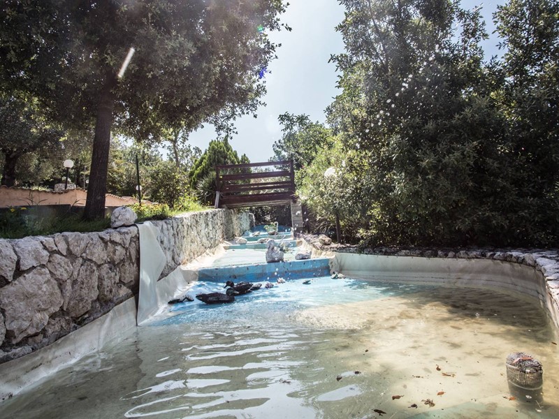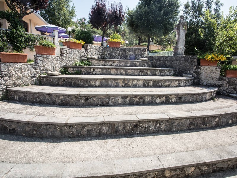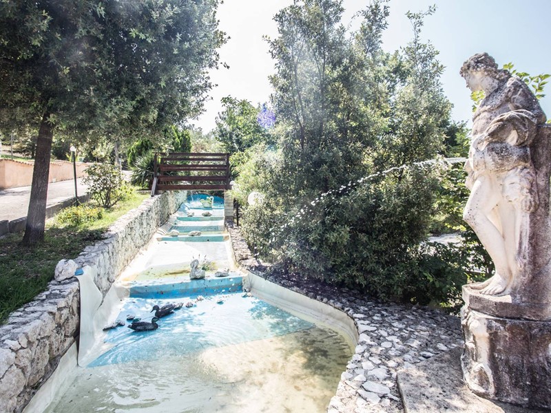 Abbellisce il tutto una costruzione pagota esterna con copertura a tegole adibita a discoteca con costruzione attigua contenente tutte le attrezzature - parcheggio di 2.000 mq - ruscello di oltre 20 metri con cascata. iniziale - ponticello belvedere - costruzione alberghiera - 3 villini di 50 mq - magazzini - pozzo artesiano.