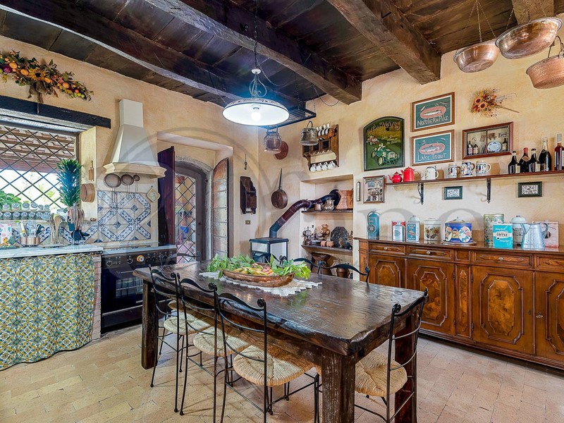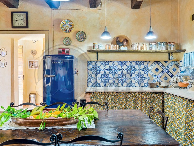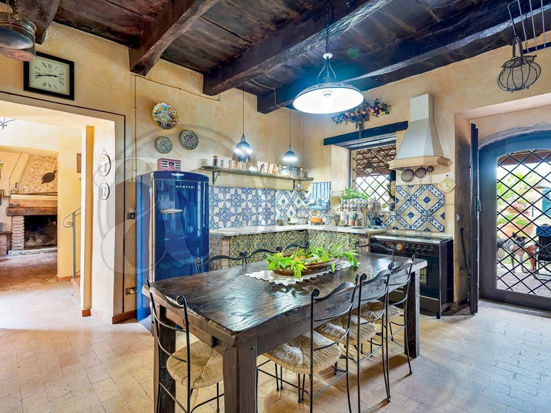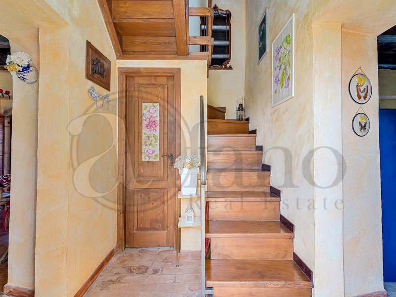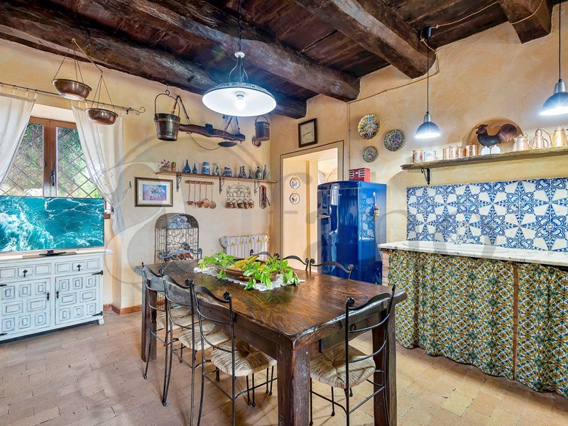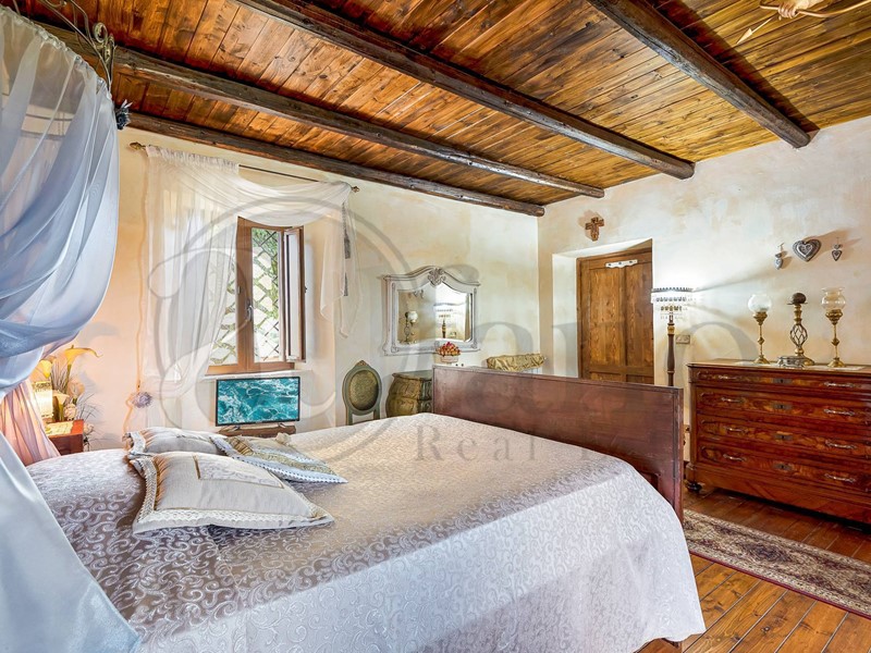 La proprietà è composta da una cucina in muratura, soggiorno con antico camino in pietra e legno, un salottino, quattro camere da letto e due bagni.