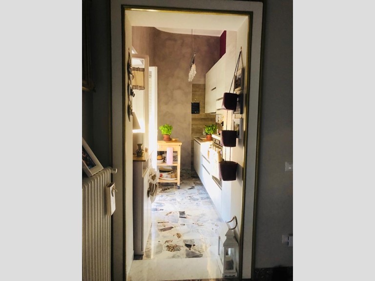 La cucina, anch'essa con vista sul corso, dispone di un altro balcone ideale per colazioni all'aperto.