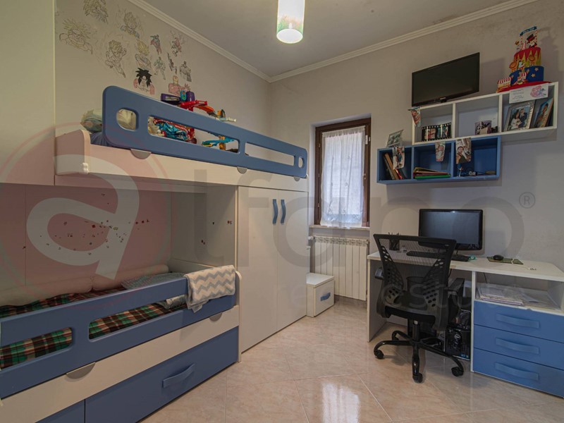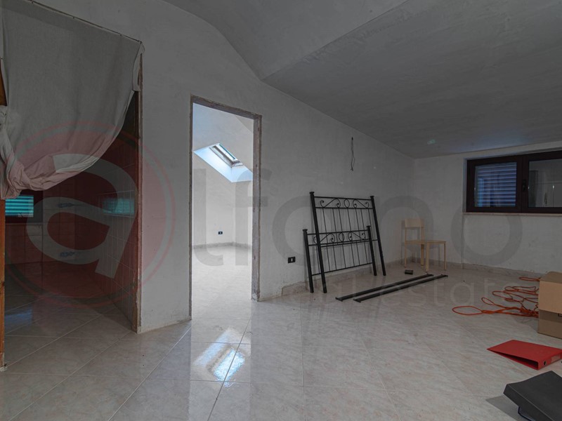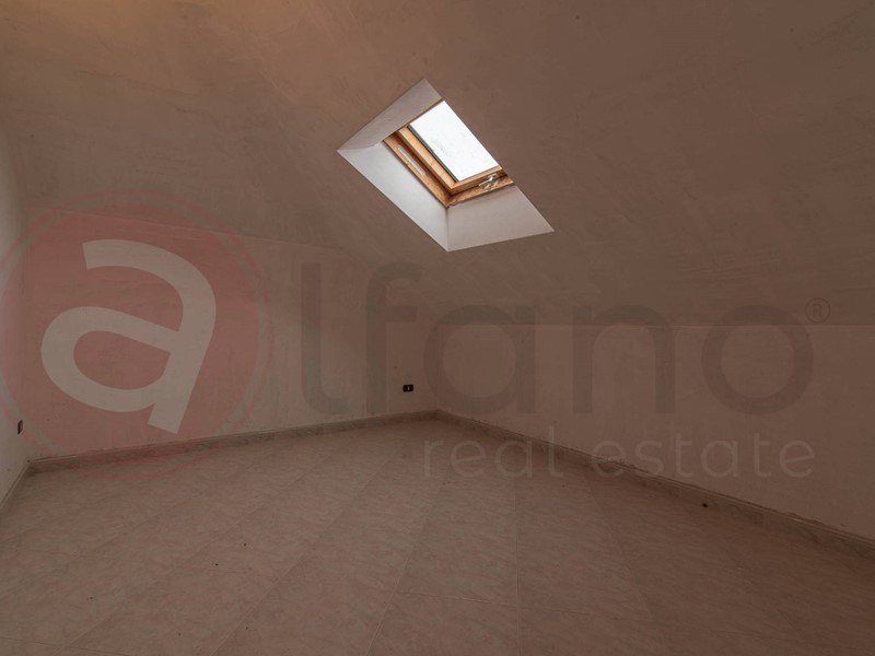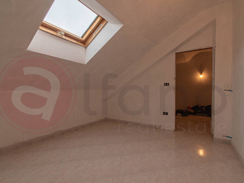 L'appartamento al primo piano dispone di ingresso, salone, cucina, tinello, due camere da letto, bagno e ripostiglio, mentre la mansarda al secondo piano è composta da una sala, due camere da letto e un altro bagno.