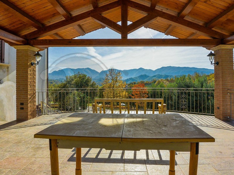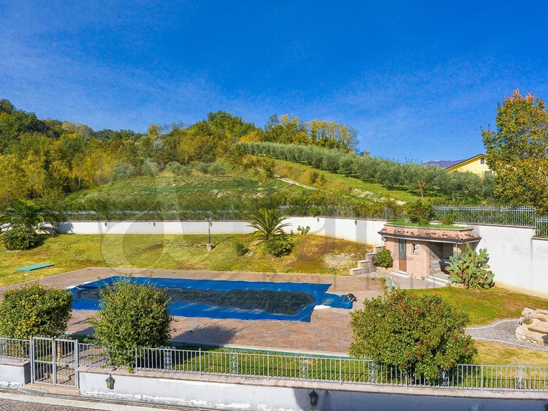 Di fianco all'ingresso è stato realizzato un portico il legno di oltre 40 metri, ideale per pranzi e cene immersi nella natura. Uno dei punti di forza della Villa è sicuramente il sopracitato parco privato, infatti al suo interno è stata creata una piscina di acqua salata 7 x 18 metri con caldaia propria, spogliatoio e docce.