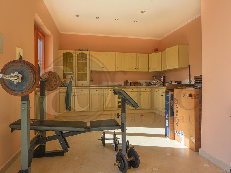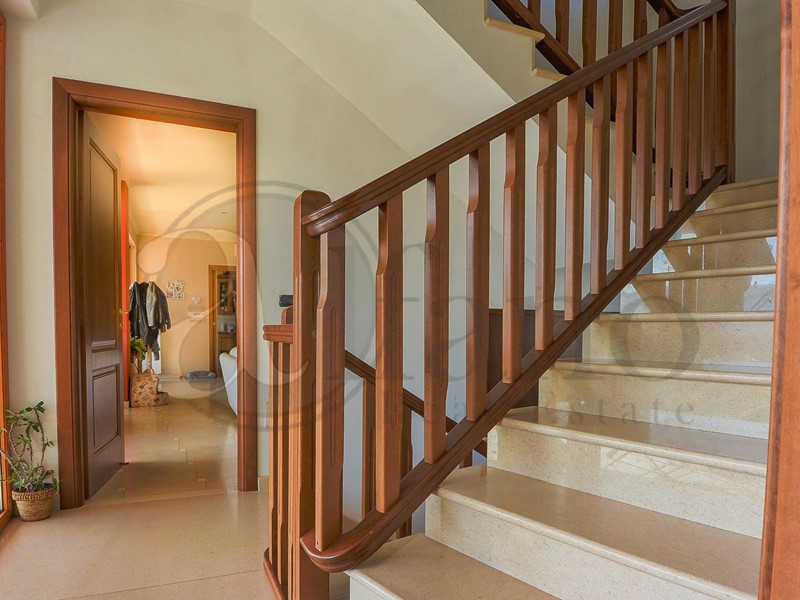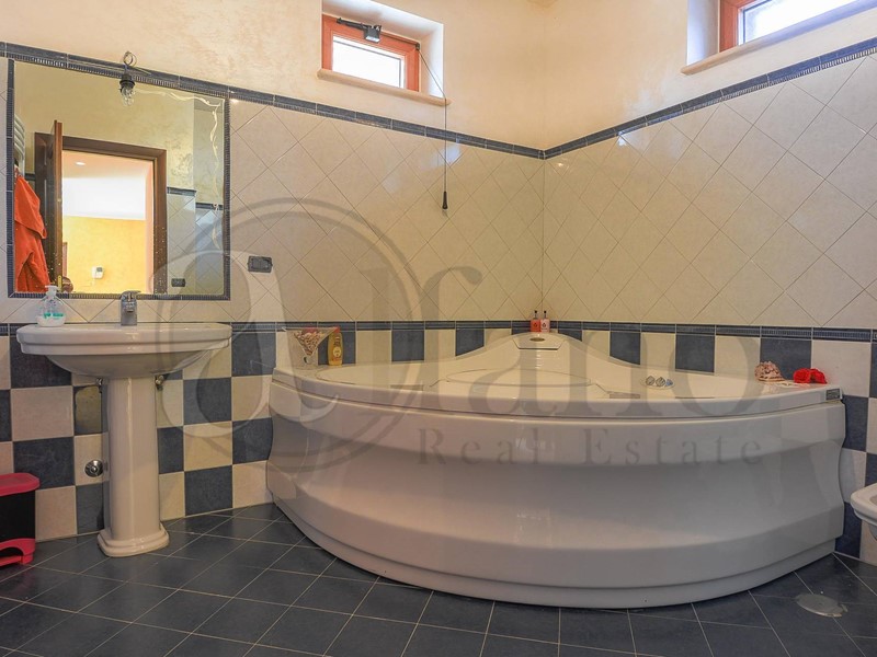 La struttura della villa è in cemento armato, la zona giorno è stata progettata al piano intermedio, in perfetto stile americano, infatti ci accoglie un salone doppio tutto finestrato con terrazzo di 30 metri coperto, cucina tinello camera e servizio. Al piano superiore, interamente pavimentata in parquet c'è la zona notte composta da due camere con servizio. Al pian terreno vi è un secondo appartamento indipendente composto da salone doppio con cucina a vista, due camere, bagno con vasca idromassaggio jacuzzi e garage automatico.
