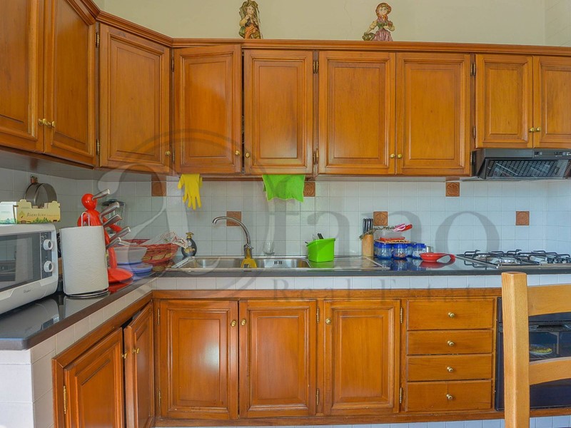 La proprietà, attualmente abitata al secondo piano, è composta da tre camere da letto, cucina con camino, soggiorno e due bagni più un ripostiglio, inoltre troviamo un'ampia balconata/terrazzo che affaccia su due lati.