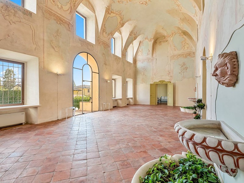 Ogni ambiente della villa offre particolari d'epoca che arricchiscono gli spazi, dai pavimenti lavorati, alle pareti affrescate, alle porte antiche fino alle statue e alle fontane del...