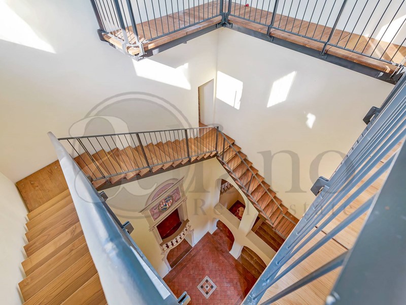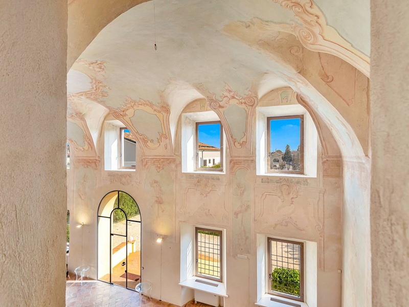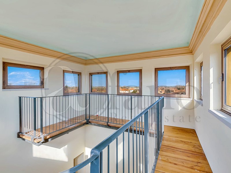 Attraversando quest'ampio e luminoso salone ci s'immerge totalmente nell'atmosfera magica dei secoli trascorsi fino a raggiungere la parte più alta della villa, la torre di vedetta, dalla quale si può godere di un panorama mozzafiato su tutta la valle circostante.
