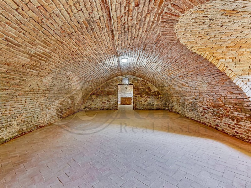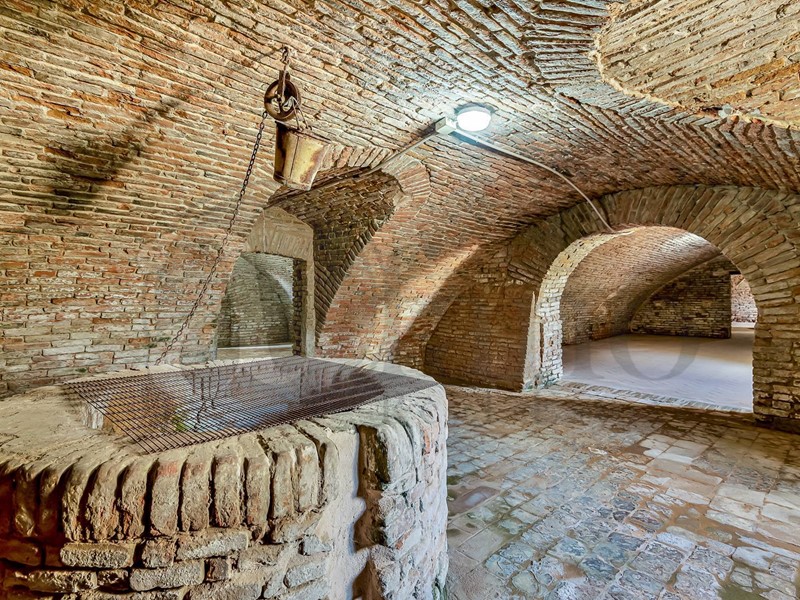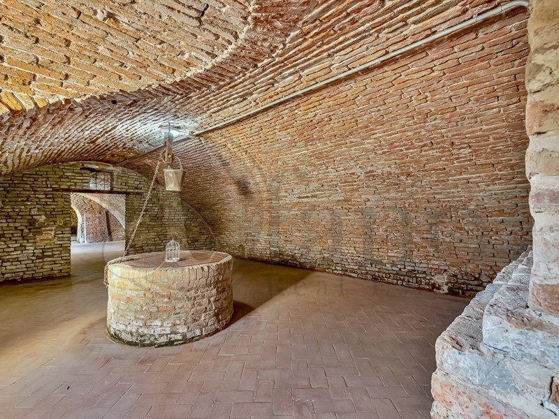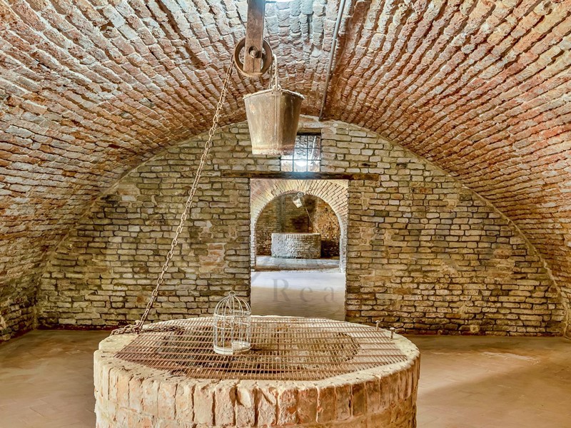 Dal punto più alto della villa, scendendo la scalinata interna, quasi a formare una spirale quadrata, si giunge al piano seminterrato che regala una sorprendente area perfettamente conservata dalle pareti in mattoncini dove si scorge un antico pozzo visibilmente ben conservato e una serie di stanze che percorrono tutte le fondamenta della villa in un ambiente asciutto e luminoso in quanto dotato di ampie e luminose finestre.
