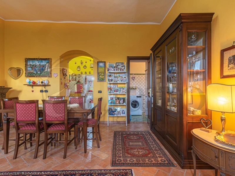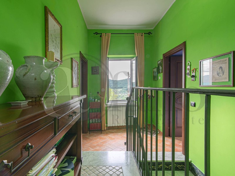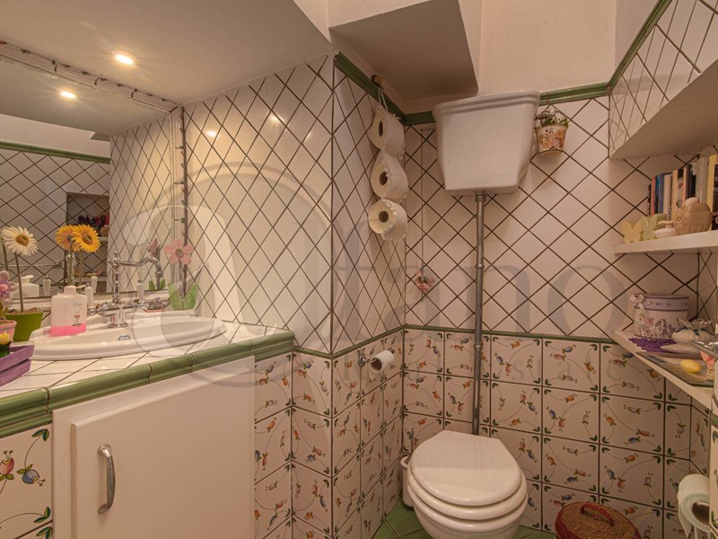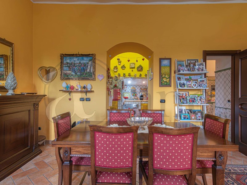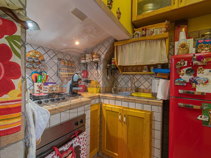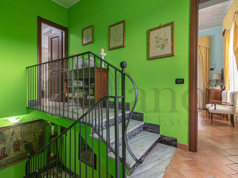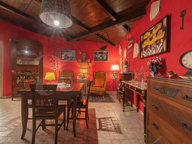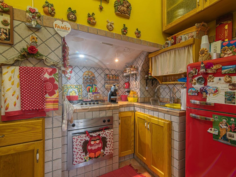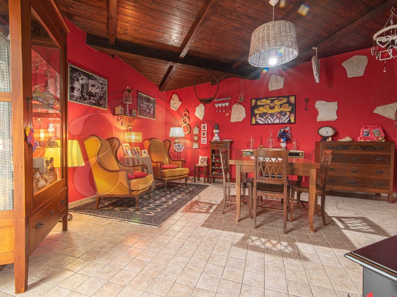 Al piano terra troviamo un ampio ingresso con vano scala, un ampio salone con i soffitti in legno perfettamente mantenuti, un soggiorno, una cucina interamente costruita in muratura e dai colori vivaci, uno studio e un bagno.