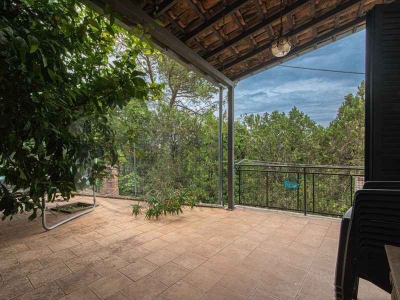 Salendo al primo piano attraverso il vano scala interno troviamo due spaziose camere da letto, una con affaccio su un balcone panoramico e l'altra con affaccio su un ampio porticato e un bagno.