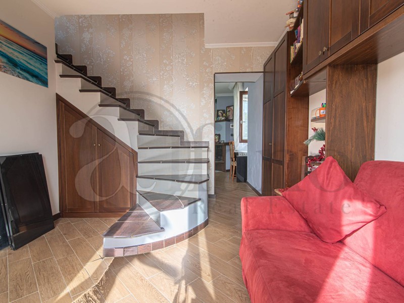 Dal salotto, attraverso una scala interna si raggiunge la zona notte, composta da un'ampia e luminosa camera da letto dai colori tenui e con uno spazio interessante per una cabina armadio (da installare).