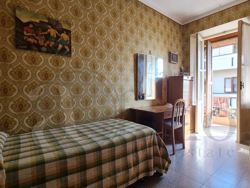 L'immobile si presenta in buono stato ed è abitabile sin da subito, la sua tripla esposizione lo rende molto arioso e ne garantisce anche una vista molto aperta e panoramica. Internamente è composto da un ingresso, ampio salone con terrazzino, due camere da letto, cucina semi abitabile con balcone, servizio, posto auto coperto esclusivo e piccolo giardino di circa 40 mq.