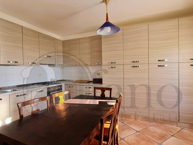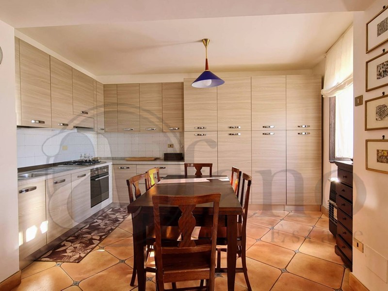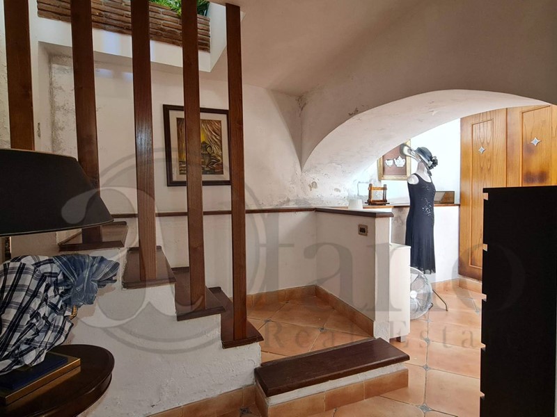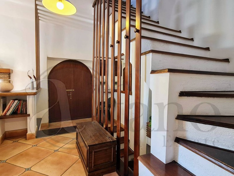Al piano rialzato ci accoglie la zona giorno, composta da un ampio salone doppio con cucina a vista su misura, caratteristico camino originale reso ancora più unico nel suo genere grazie ad un pannello in rame fatto a mano da un artigiano locale e servizio. La scala interna è rivestita in legno, anch'essa in perfetto stato, e collega tutti gli ambienti posti ai vari livelli del palazzo.