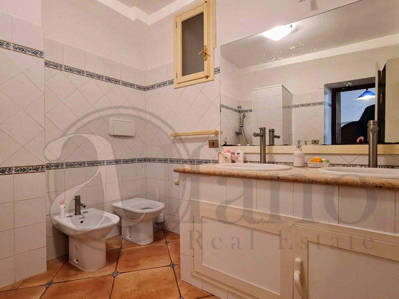 Al primo piano è distribuita la zona notte, fatta di una grande camera matrimoniale con armadio su misura, due camerette ed un balcone con tipico bagnetto e lavabo esterno. Scendendo di due livelli si arriva al piano sottostante l'ingresso, essendo la proprietà posta in posizione rialzata rispetto alla strada, quest'ultimo ambiente di oltre 40 mq è a tutti gli effetti un pian terreno e non seminterrato.