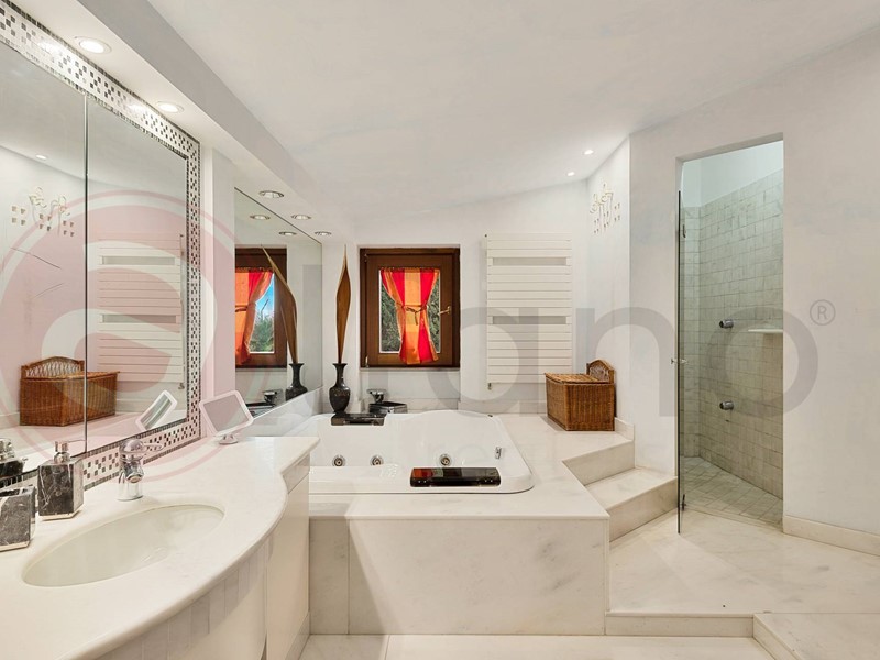 L'interno della villa è composto da una luminosa zona giorno, una cucina abitabile completamente attrezzata, cinque spaziose camere da letto separate e quattro bagni lussuosi dotati di vasca idromassaggio.