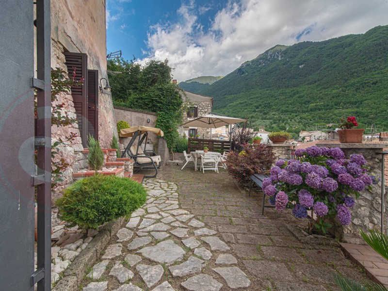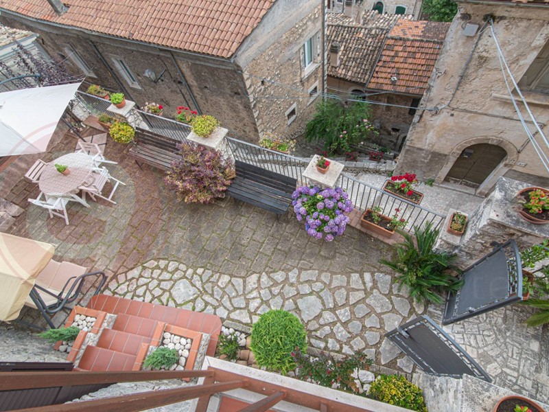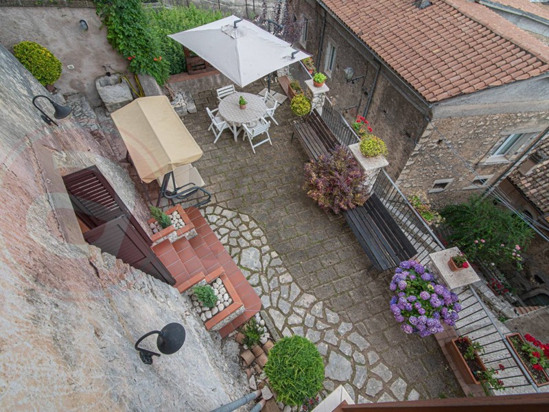 E' importante evidenziare il punto di maggior confort e pregio dell'immobile, il giardino pensile. E' stato completamente ripavimentato in pietra e marmo, mentre la ringhiera ed il portone di accesso sono in ferro zincato. Questo ambiente permette di poter godere di un panorama meraviglioso su uno dei borghi più storici e di pregio della Valle di Comino, a pochi passi dal parco Nazionale di Abruzzo, Lazio e Molise.
