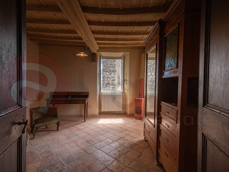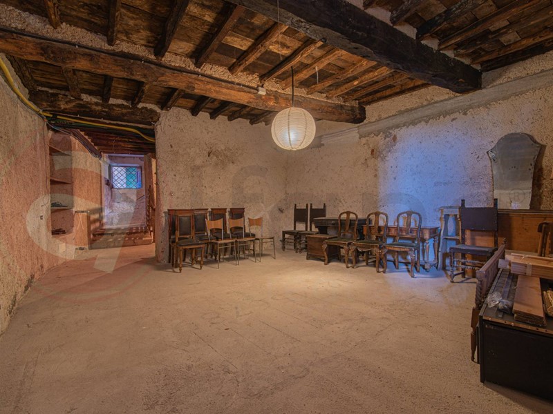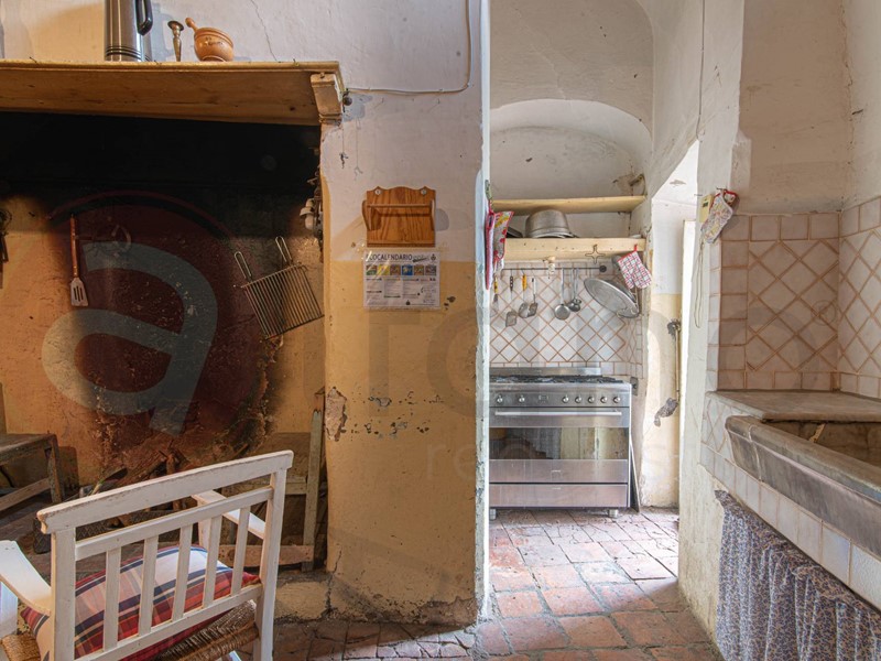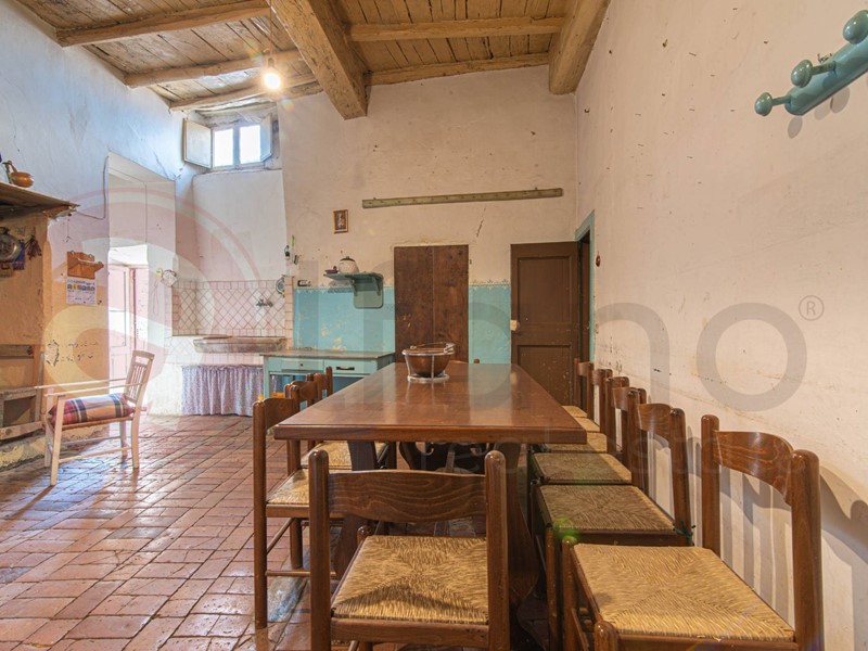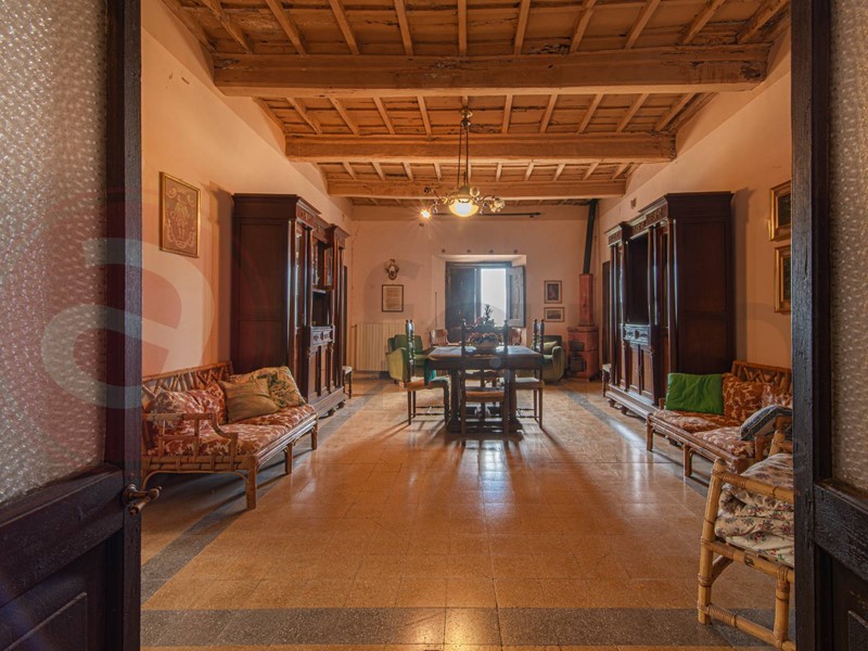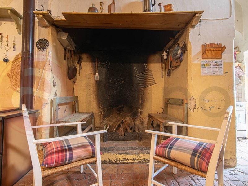 Al piano terra troviamo un ampio ingresso, salone doppio, cucina abitabile con enorme camino unico nel suo genere alto 2 metri, largo 3 e profondo oltre 1 metro (al suo interno sono presenti due panche in legno con 4 sedute), cinque camere matrimoniali, due servizi ed un ripostiglio. Tornando all'ingresso, troviamo una doppia scala in pietra, dislocata in due diversi punti: una parte ci conduce al primo piano, dove troviamo due altre camere matrimoniali ed un sottotetto utilizzato come ripostiglio, l'altra scala va invece al piano sottostante dove c'è un altro appartamento con accesso indipendente.