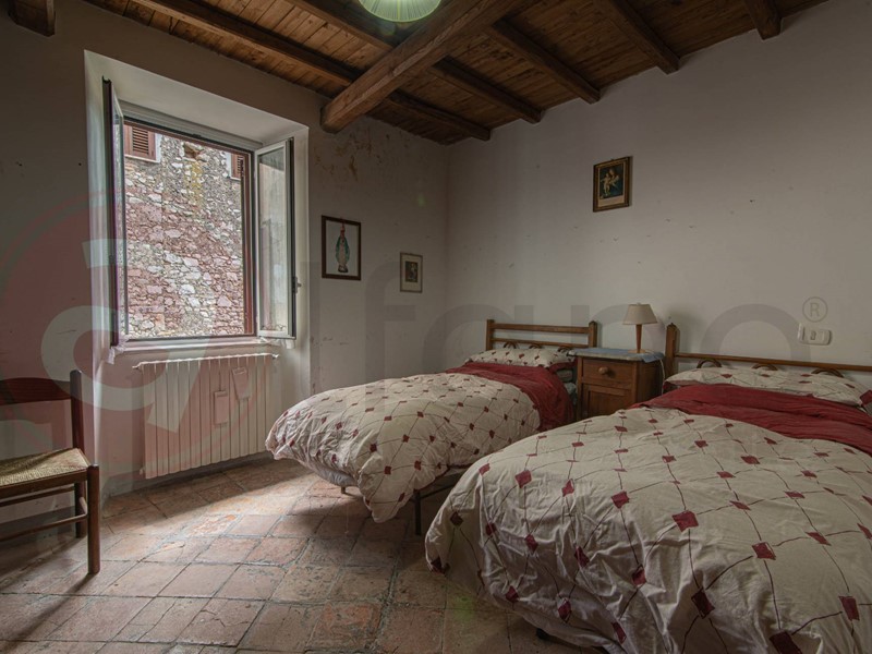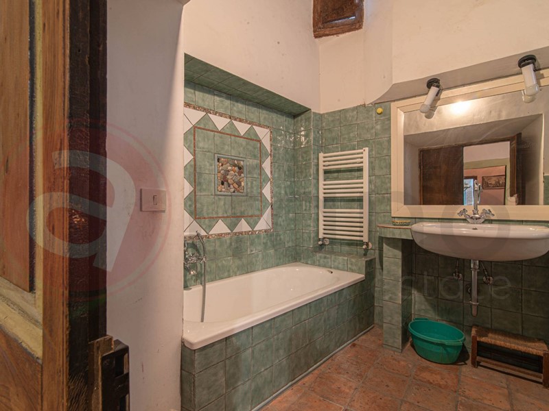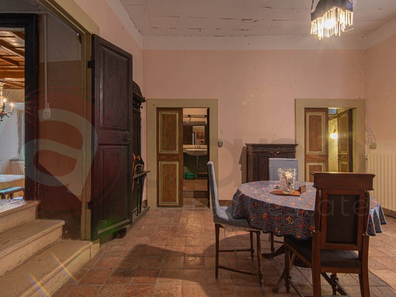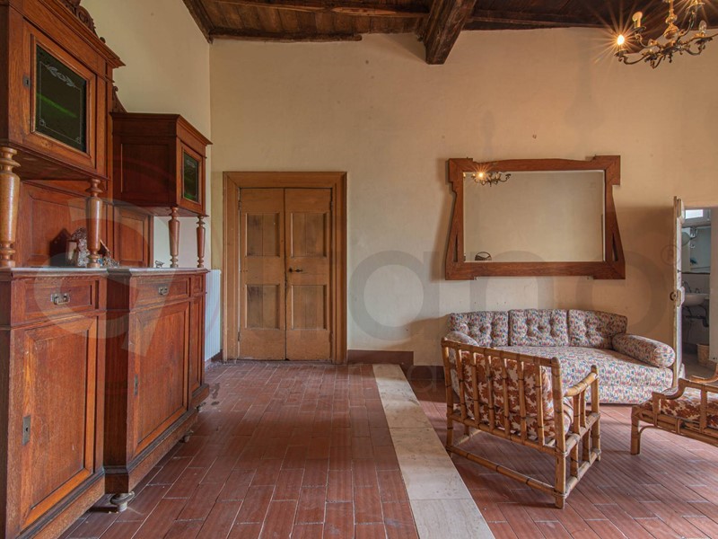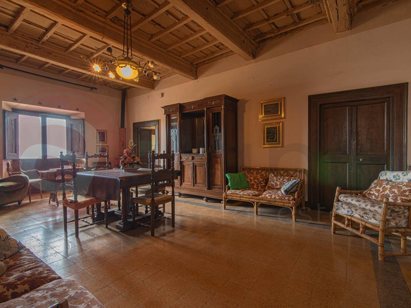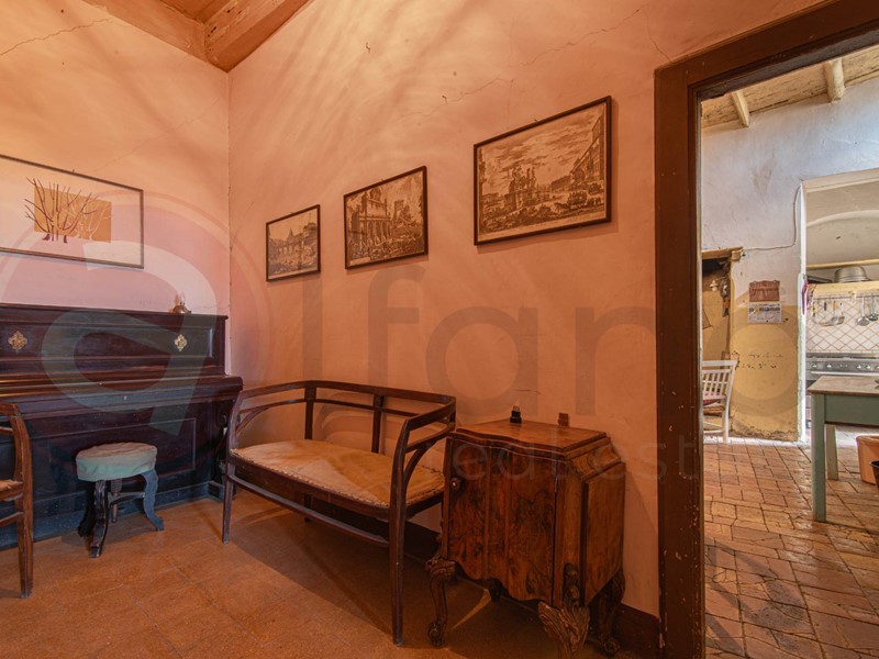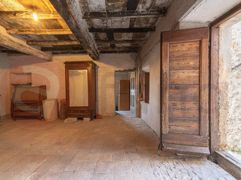 Al piano terra troviamo un ampio ingresso, salone doppio, cucina abitabile con enorme camino unico nel suo genere alto 2 metri, largo 3 e profondo oltre 1 metro (al suo interno sono presenti due panche in legno con 4 sedute), cinque camere matrimoniali, due servizi ed un ripostiglio. Tornando all'ingresso, troviamo una doppia scala in pietra, dislocata in due diversi punti: una parte ci conduce al primo piano, dove troviamo due altre camere matrimoniali ed un sottotetto utilizzato come ripostiglio, l'altra scala va invece al piano sottostante dove c'è un altro appartamento con accesso indipendente.