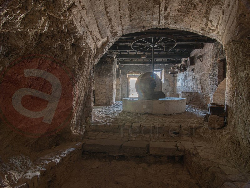 Davanti a noi si apre un ambiente open space tutto scavato nella pietra, con pavimentazione in ciottoli originali, due macine in pietra con tutte le carrucole in legno perfettamente conservate nel quale è possibile fare un vero e proprio salto temporale e immaginare concretamente come una volta si produceva l'olio direttamente nelle abitazioni.