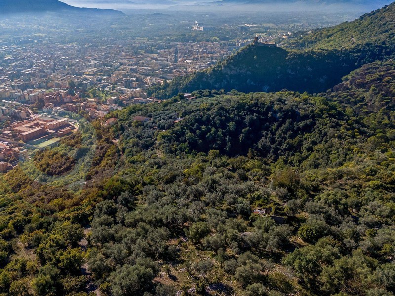 Il terreno è adibito a pascolo e a bosco, presenta circa 6000 piante di ulivo, centinaia di alberi da frutto, agrumeti e querce secolari, disposti sui numerosi terrazzamenti fatti da muri di pietra originale a secco, caratteristica tipica dell'epoca in cui fu realizzato questo complesso.