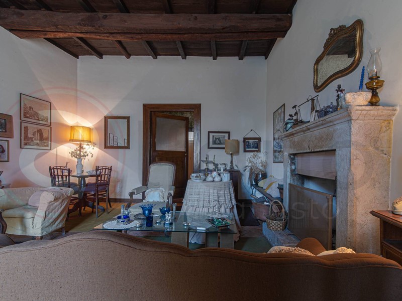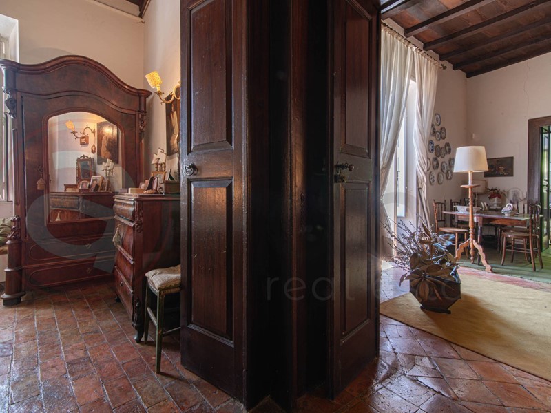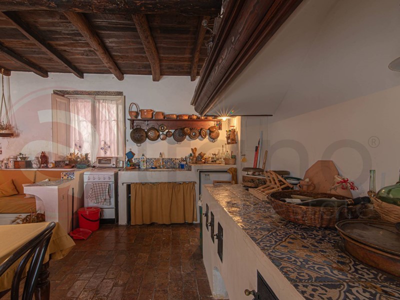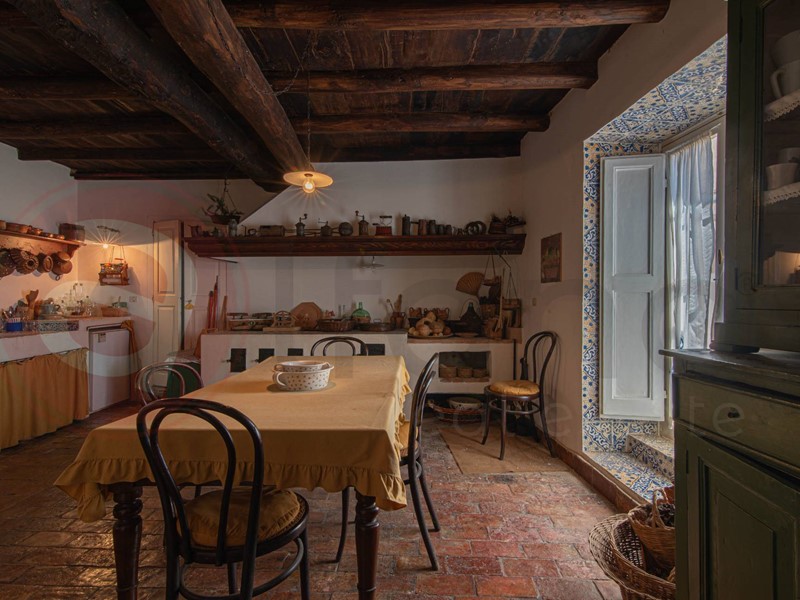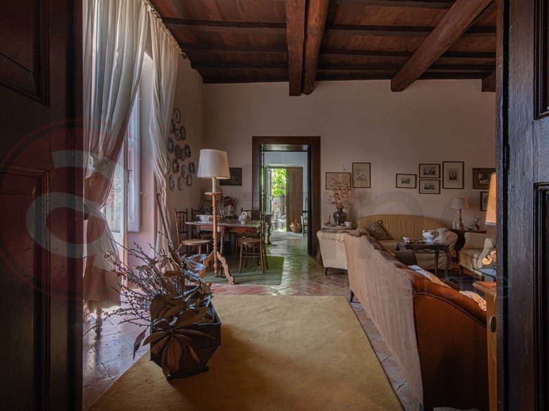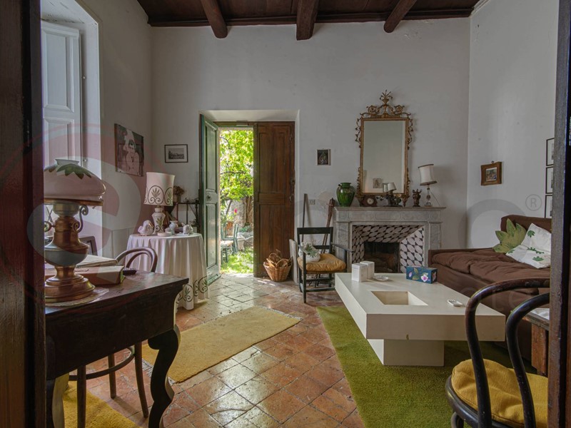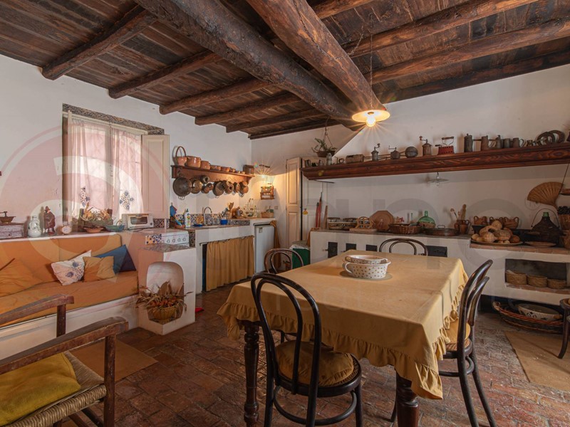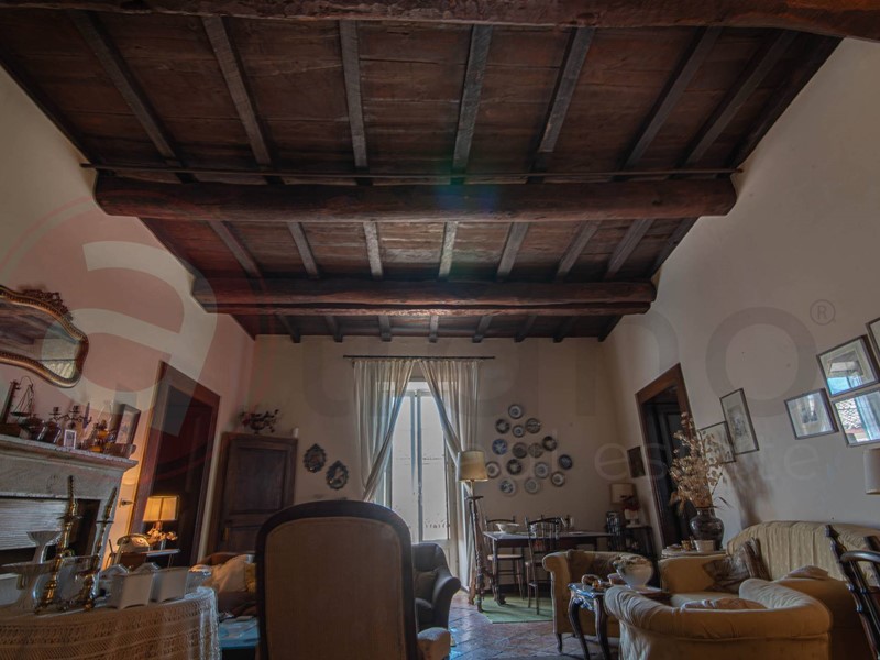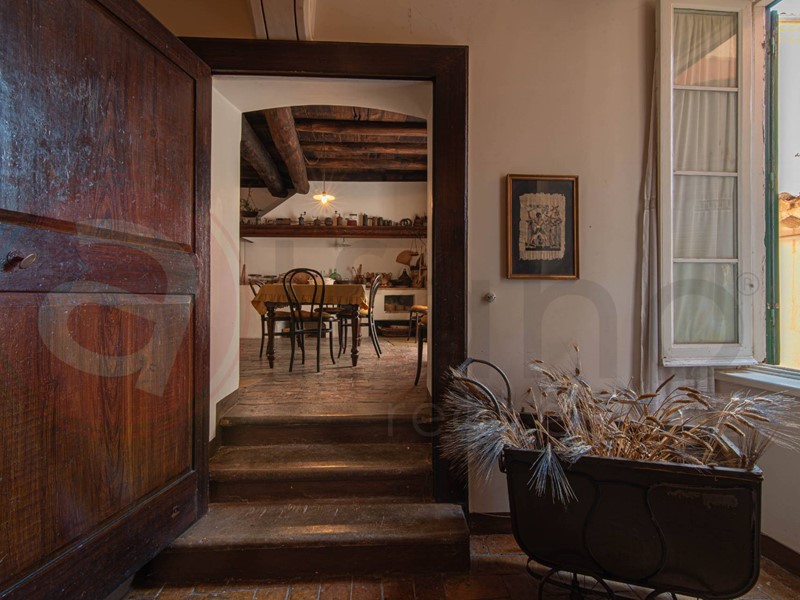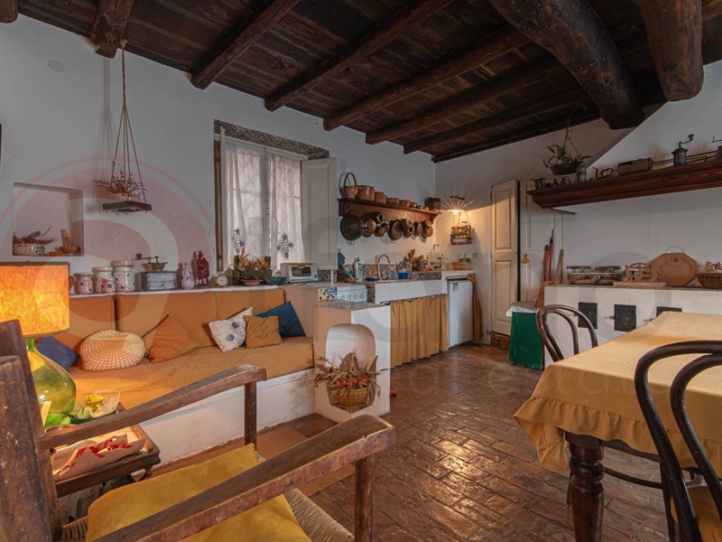 Altri elementi di pregio presenti all' interno della casa, che garantiscono un fascino tipico degli immobili del 700, sono i soffitti alti con travi di legno a vista ed i pavimenti in cotto.