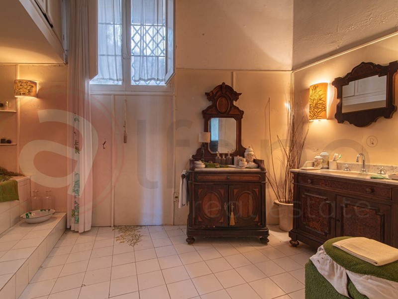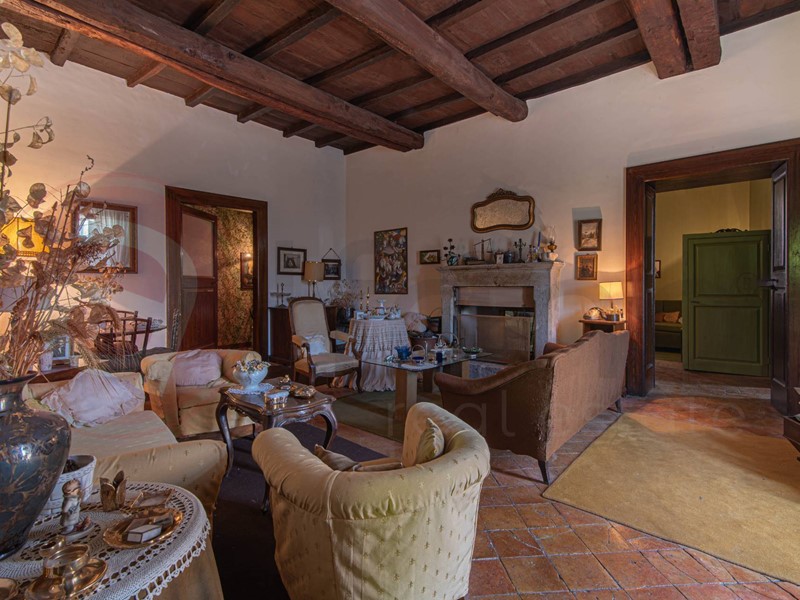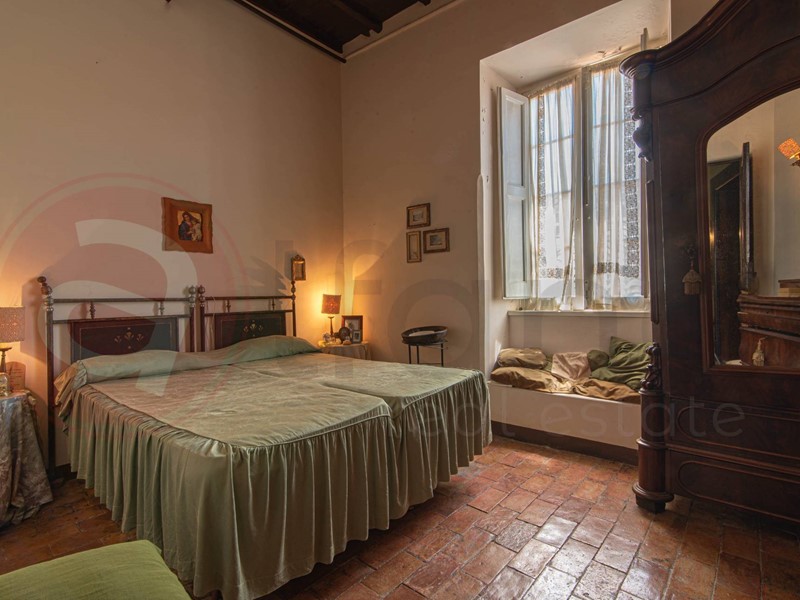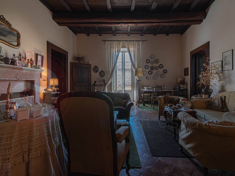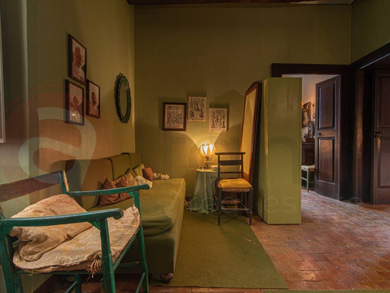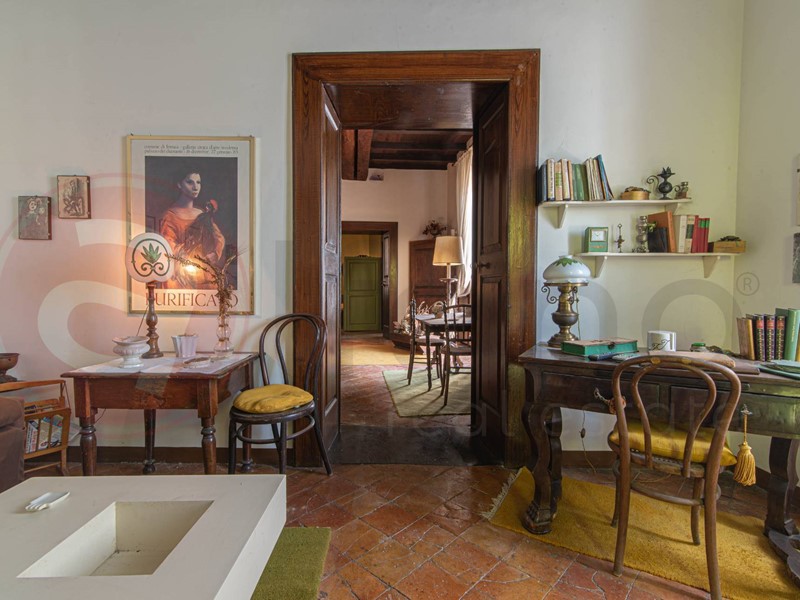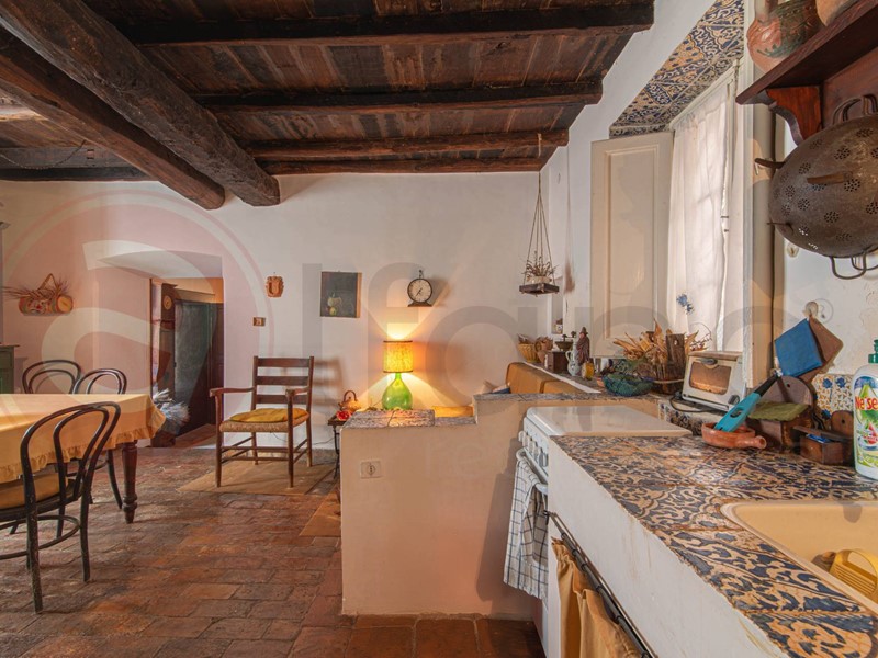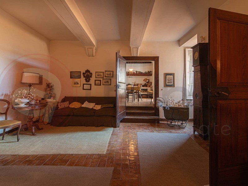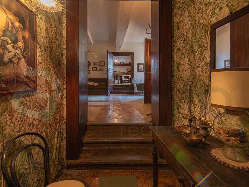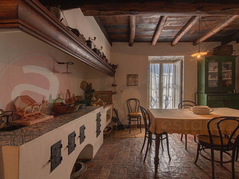 Altri elementi di pregio presenti all' interno della casa, che garantiscono un fascino tipico degli immobili del 700, sono i soffitti alti con travi di legno a vista ed i pavimenti in cotto.