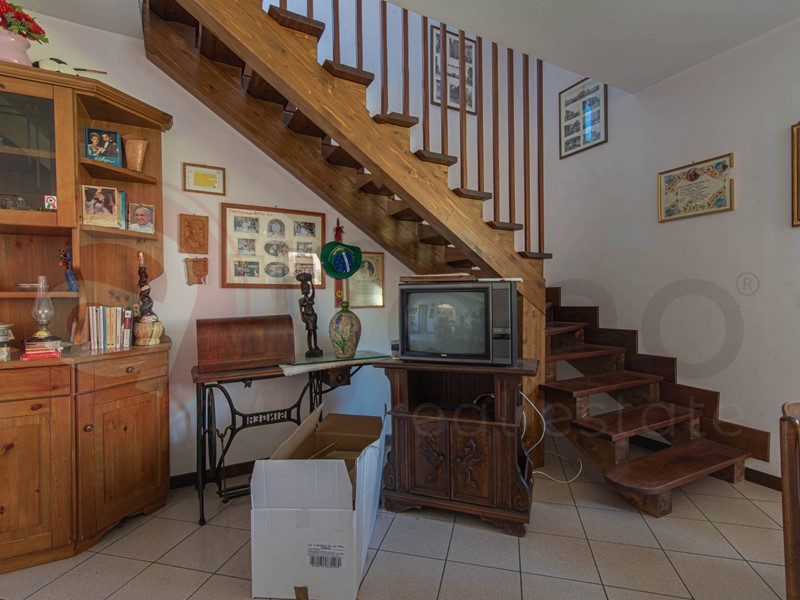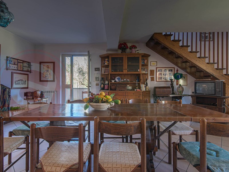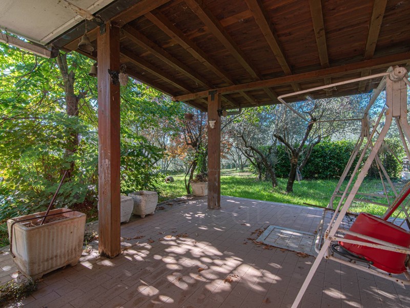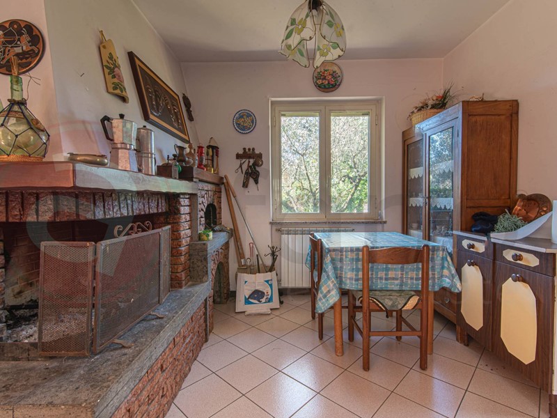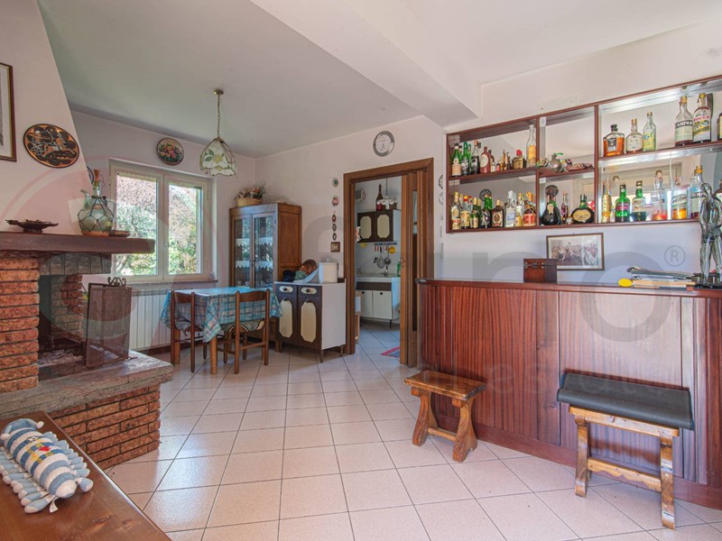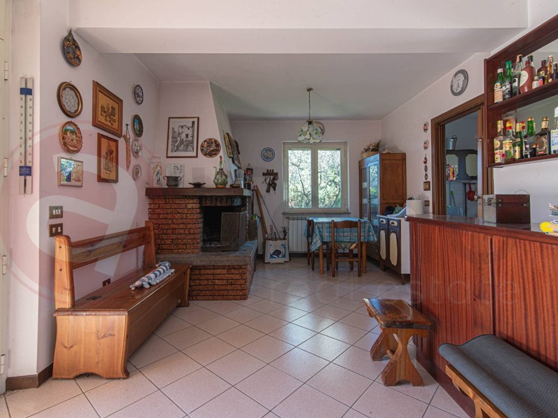 Un ampio portico in legno di circa 25 mq antecede il portone di ingresso, dopodichè troviamo l'ampia zona giorno fatta da un salone doppio, annessa sala da pranzo con camino, forno a legna e angolo bar, cucina abitabile con balcone, camera matrimoniale ed un servizio.