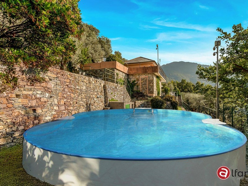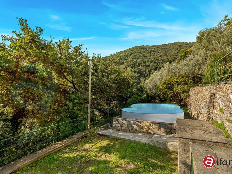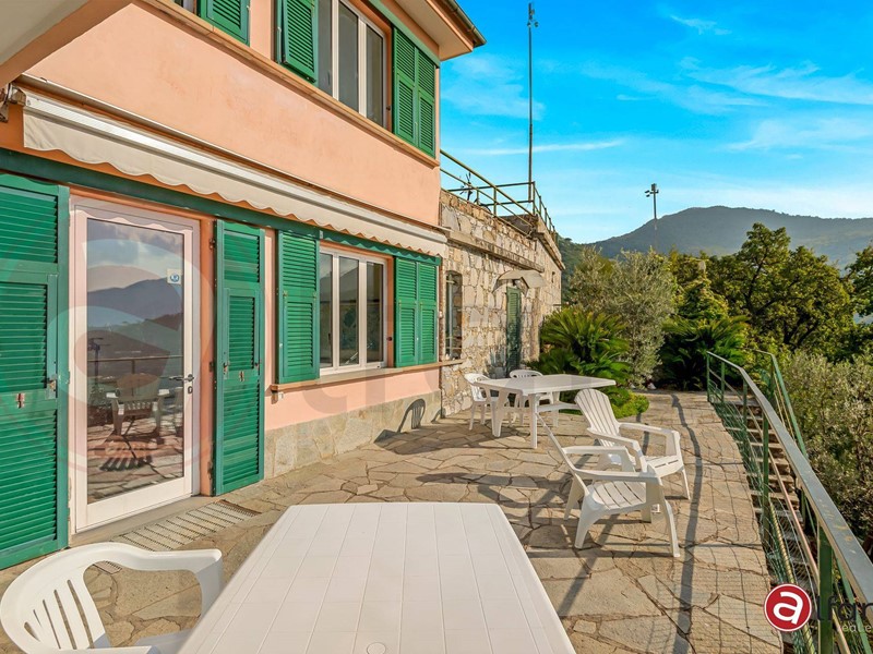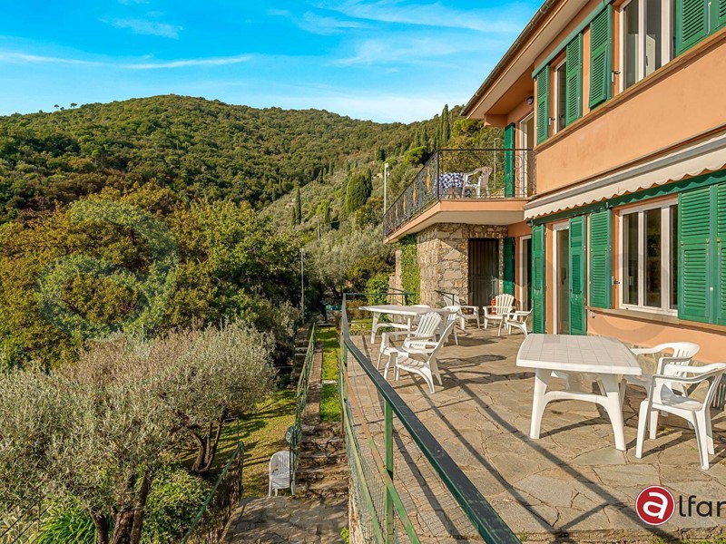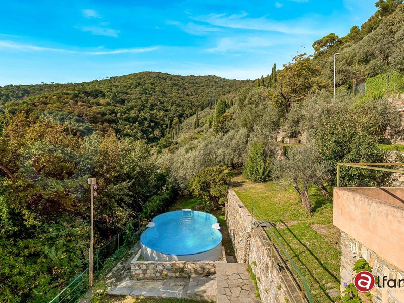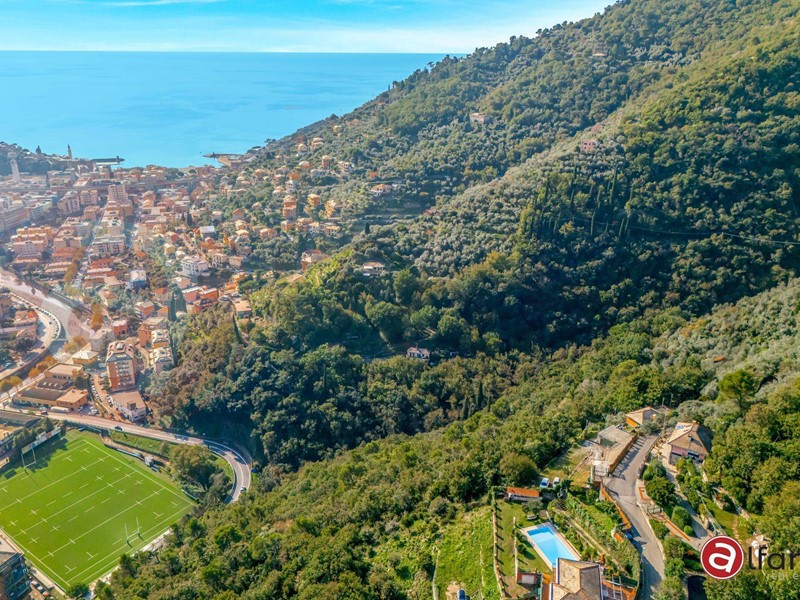 A Recco, unaffascinante località della Riviera Ligure, proponiamo in vendita una bellissima Villa singola ed unifamiliare composta di due appartamenti con piscina, giardino e bosco.