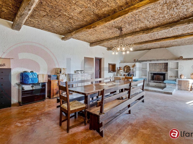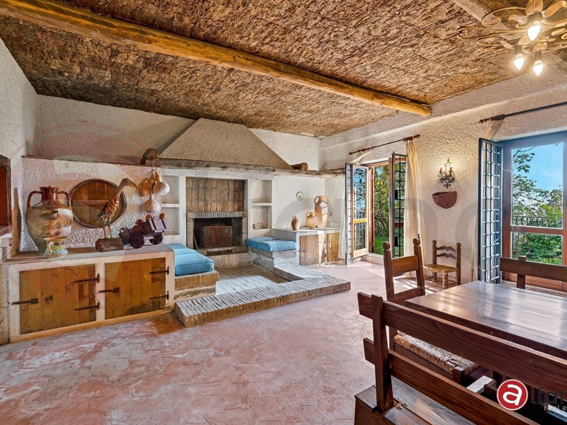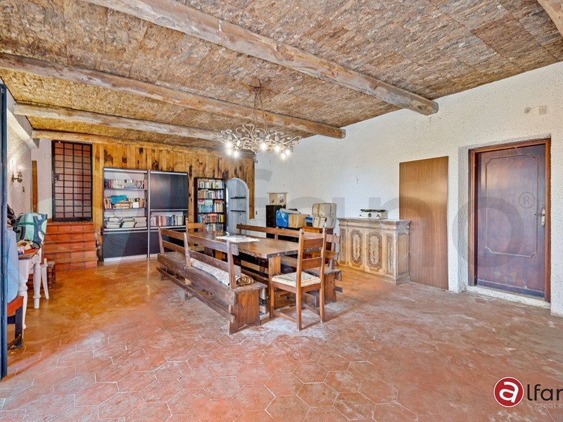 Infine, il piano inferiore ospita una caratteristica "taverna" rustica con un camino e un grottino, insieme a una camera da letto e un bagno.
