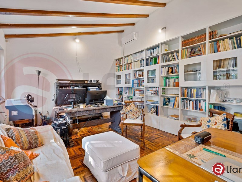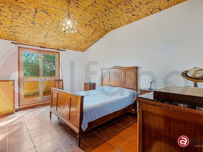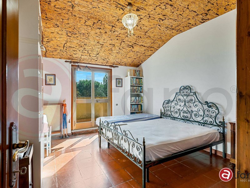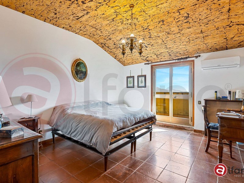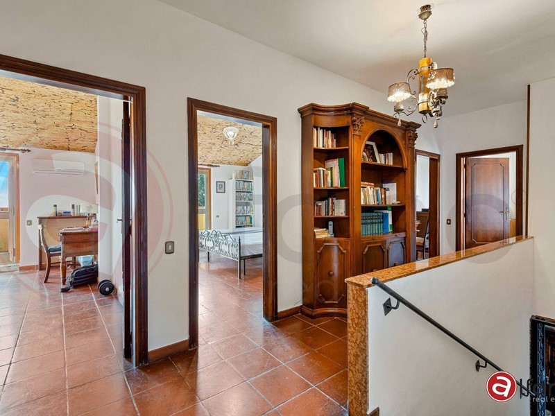 Il piano superiore, caratterizzato da due bagni, una camera da letto, e l'accesso a una delle terrazze, si apre a una veranda con vista, creando uno spazio ideale per momenti di relax.