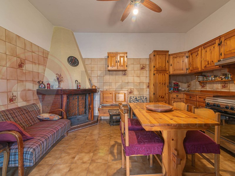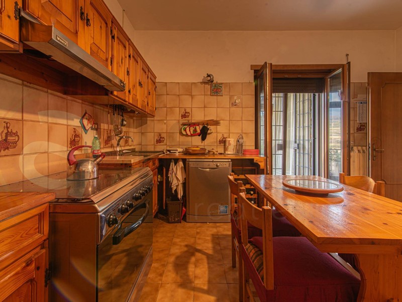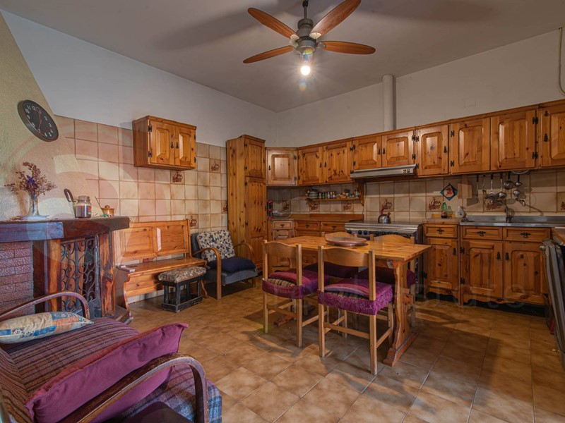 entrando sulla destra è presente la cucina abitabile con camino e terrazzo a livello di circa 14 mq in parte coperto, un salone, tre camere matrimoniali, due servizi ed un balcone.