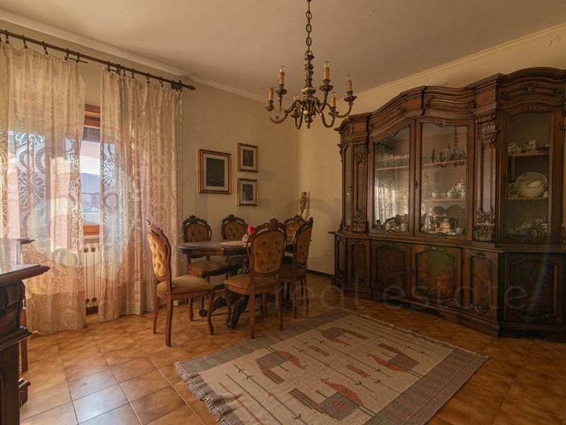 Al piano strada è presente il primo dei due appartamenti, un grazioso quadrilocale, composta da ingresso, cucina abitabile, due camere, servizio e ripostiglio. Salento tramite la scala esterna in marmo, si accede al primo piano, composto da ampio ingresso, dal quale nasce un corridoio lungo circa 17 metri, che collega tutti i vari ambienti: