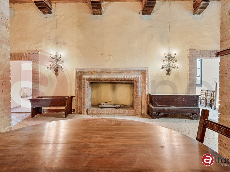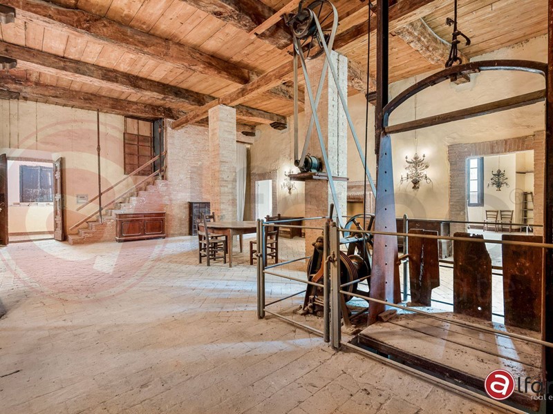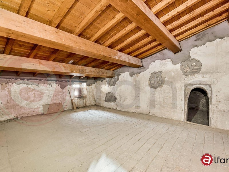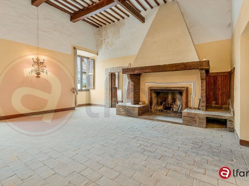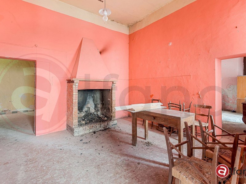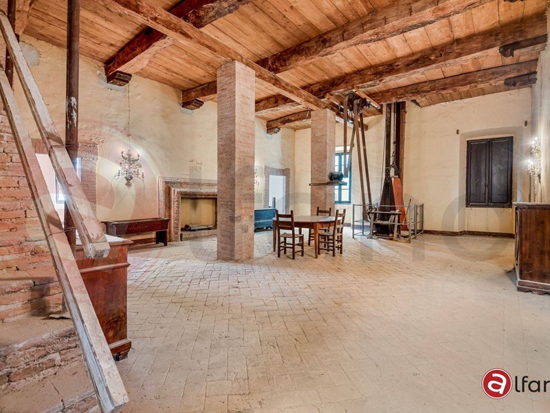 Le travi in legno a vista e i pavimenti in cotto originale raccontano di un passato ricco di autenticità e di pregio, mentre le stanze, caratterizzate da altezze generose, offrono la possibilità di essere trasformate in spazi abitativi di grande charme. In particolare al primo piano spicca maestoso il salone principale caratterizzato da soffitti molto alti, ornati da bellissime travi in legno e dominato da un camino dallindescrivibile grandezza e unicità.