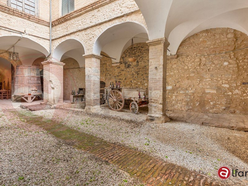 Questo prestigioso immobile, con una superficie di circa 1100 mq distribuiti su quattro livelli, tra antiche cantine, primo, secondo e terzo piano è una vera e propria testimonianza dell'architettura storica umbra; con oltre 37 ambienti tra saloni e camere, lascia trapelare storie di epoche passate e invita a diventare la cornice di nuove storie da vivere.