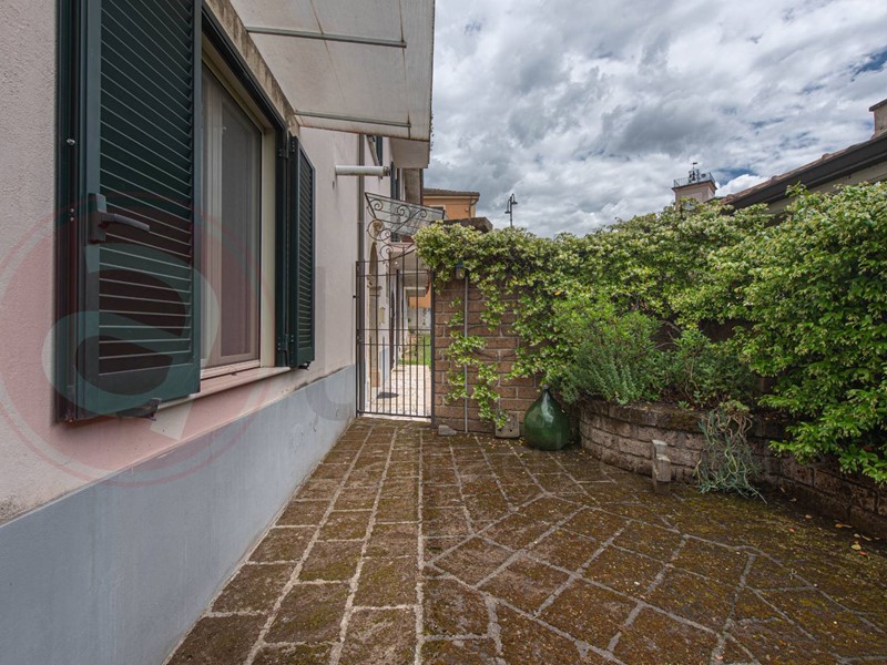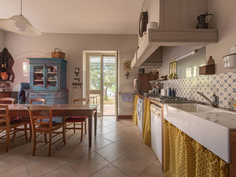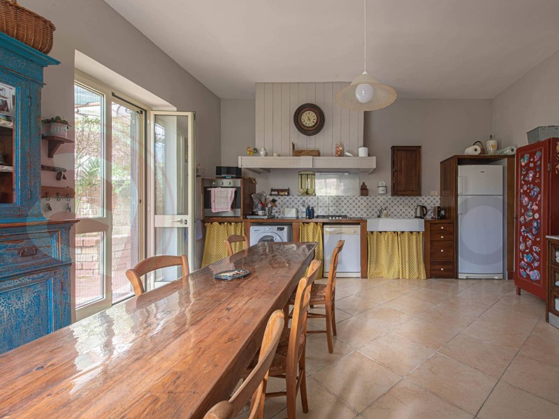 al piano terra è presente un ampio salone con camino, una cucina abitabile con accesso al caratteristico giardino ornamentale pavimentato di circa 300 metri ed un servizio;