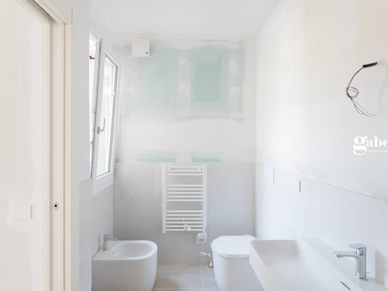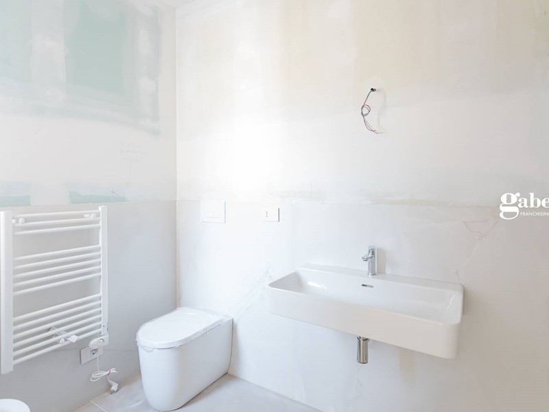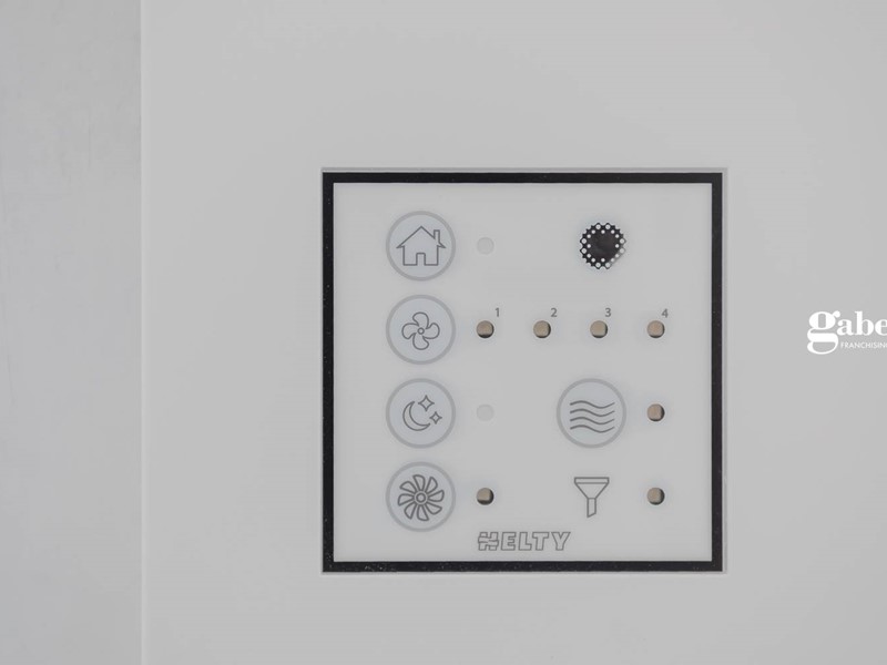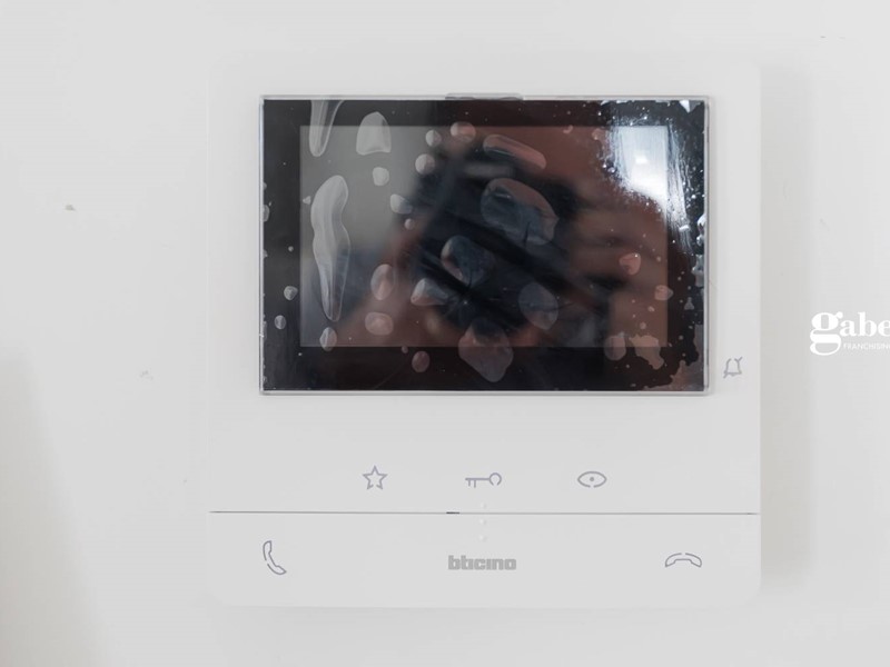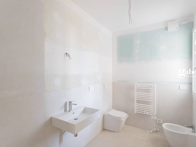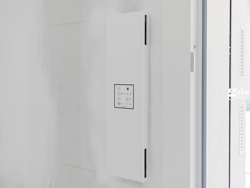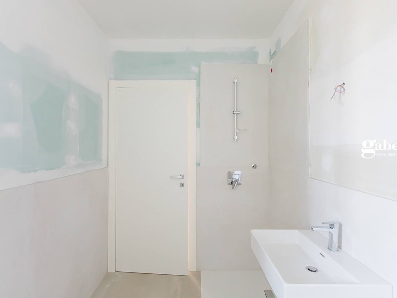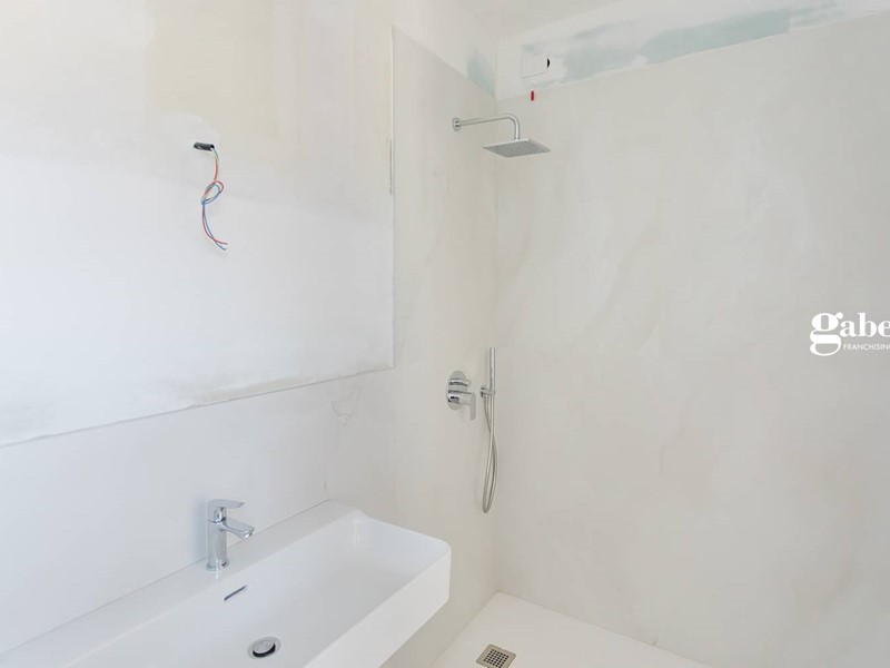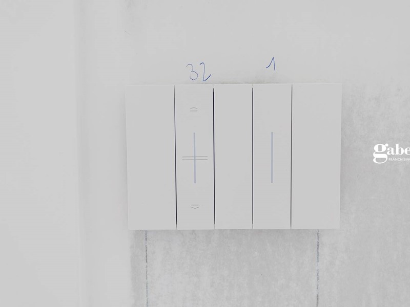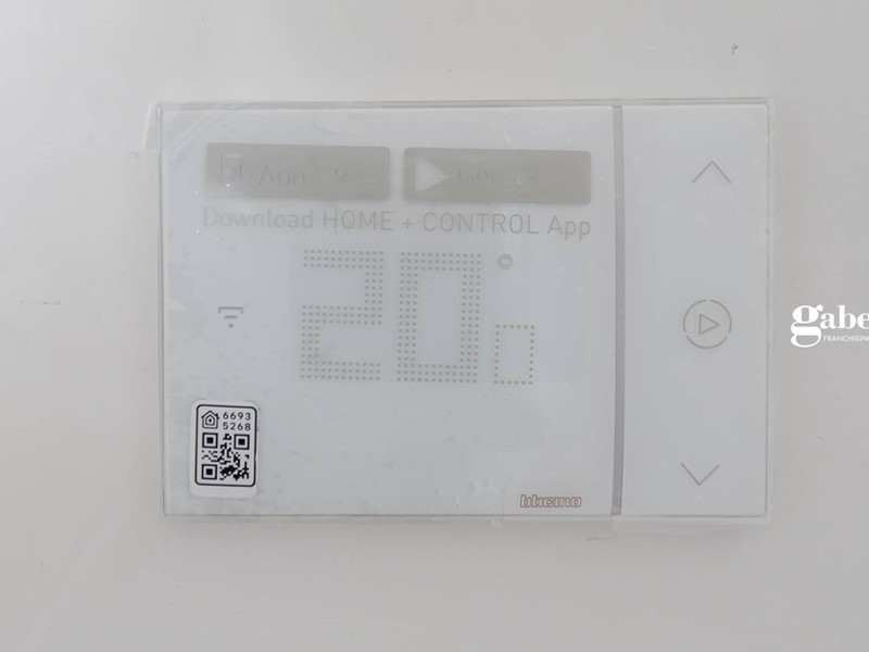 Finiture di livello, grès in grandi formati 90 x 90, rivestimento bagni in grassello di calce e domotica smart Bticino.