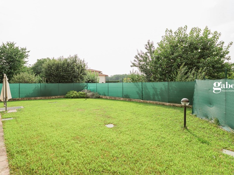 Questa soluzione immobiliare è composta al piano terra dal soggiorno con bellissimo portico sul giardino e la cucina abitabile, il disimpegno accompagna nella zona notte suddivisa in camera matrimoniale con accesso al giardino, servizi e seconda camera.