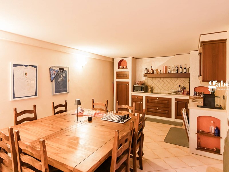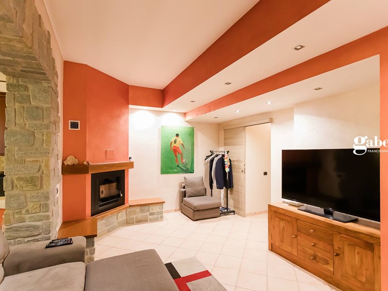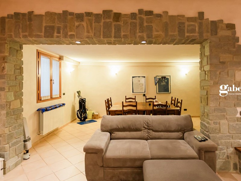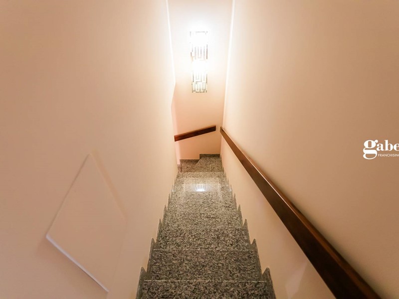 Scendendo le scale si giunge al piano interrato riservato alla taverna di generosa metratura, divisa in area relax con bellissimo camino a pellet, zona pranzo, cucina ed un ulteriore bagno/lavanderia.