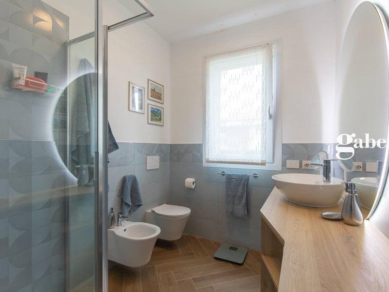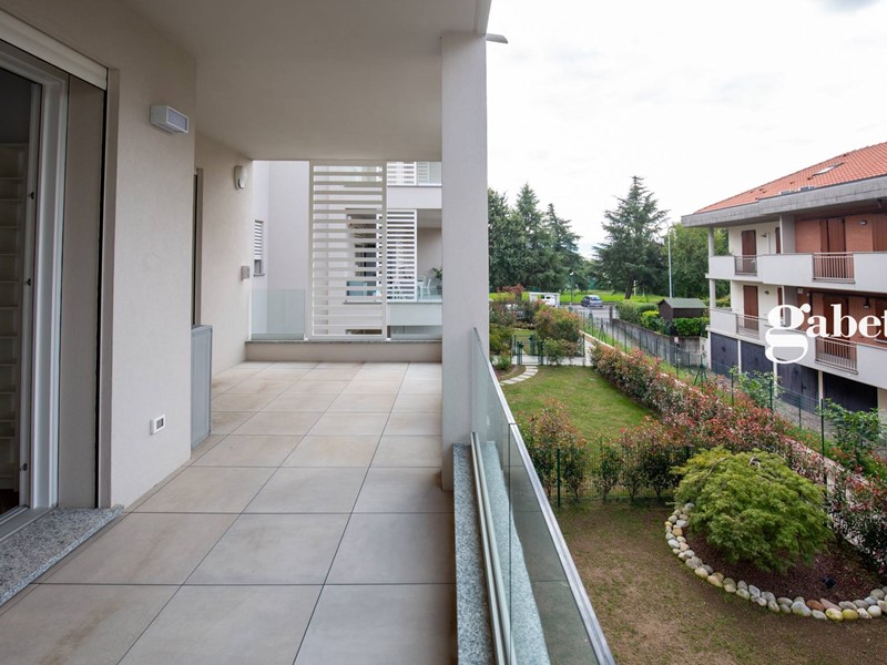 Bernareggio - Nuovo, disponiamo al piano primo, di un prestigioso appartamento finito con cura ed eleganza dotato di un terrazzo esposto a sud delimitato da un parapetto in vetro e un frangisole in alluminio. L'unità abitativa è suddivisa in un luminoso soggiorno dotato di serramento scorrevole, cucina abitabile, due camere di cui una con cabina armadio, bagno privato e balcone. Il secondo bagno completa l'appartamento. Riscaldamento a pavimento, domotica e tapparelle in alluminio automatizzate rendono unica questa proposta immobiliare. Classe A4. 295.000,00 generoso box doppio in larghezza 30.000,00.