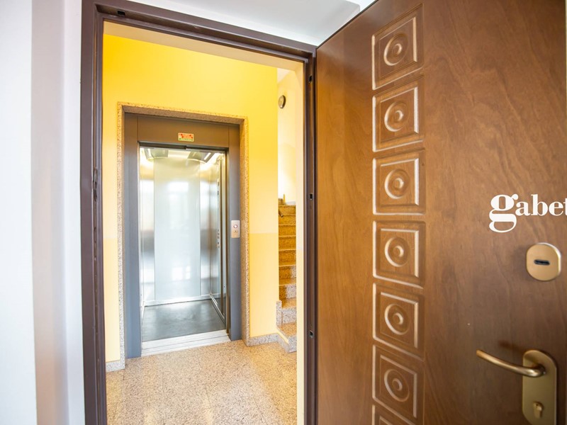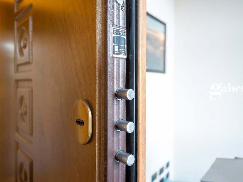 L'ingresso conduce ad un luminoso e spazioso soggiorno caratterizzato da soffitti in legno e la cucina è abitabile. L'appartamento è inoltre dotato di un sistema di riscaldamento centralizzato con contabilizzatore per la lettura dei consumi mentre l'aria condizionata è garantita da split.