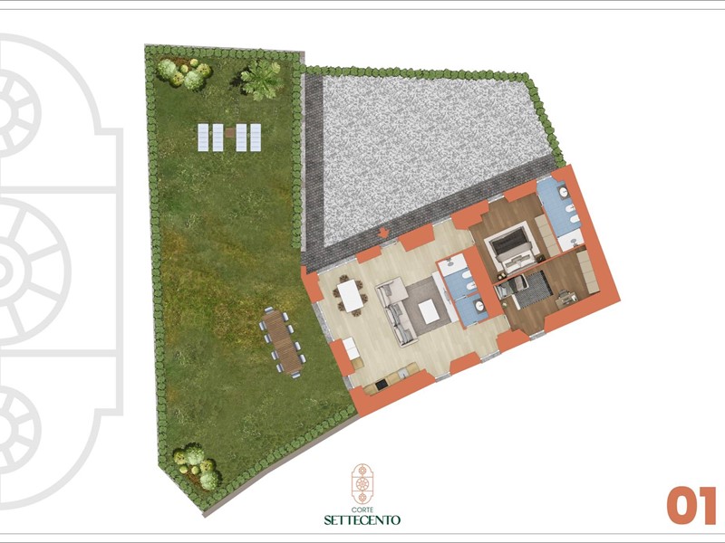 Missaglia - Elegante frazionamento di una prestigiosa dimora storica denominata Corte Settecento, situata nella parte dominante del paese e precisamente a Missagliola. Abitare con stile nel massimo comfort. Anima classica, stile contemporaneo. Una nuova idea di casa. Un'oasi dove il passato incontra il gusto del futuro. Ingressi riservati, parco privato e una limonaia tutta da scoprire all'ombra di un maestoso cedro del libano. Costruita nel 1791, la dimora si dispone su un unico livello, il piano terra, per una superficie complessiva di 130 metri quadrati oltre ad un prezioso giardino e una parte di cortile ciottolato. Gli spazi interni, ben distribuiti e rifiniti con cura, offrono un totale di 3 locali, tra cui 2 camere da letto e 2 bagni. La dimora storica si apre su un meraviglioso parco conferendo così una sensazione di spaziosità e luminosità. Solo 365.000,00.