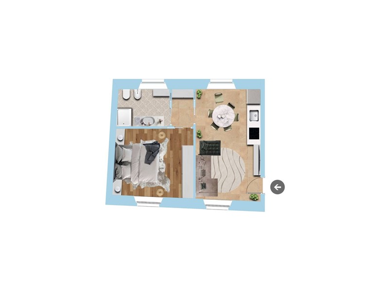 50 metri quadrati ben distribuiti e suddivisi in un ampio soggiorno esposto a sud con cucina a vista, una camera matrimoniale e un bagno finestrato. L'appartamento è composto da due locali, di cui una camera da letto matrimoniale, un bagno finestrato e un ampio e luminoso soggiorno con cucina a vista. Ideale per una coppia o per un single che desidera godere di tutti i comfort di una casa moderna.