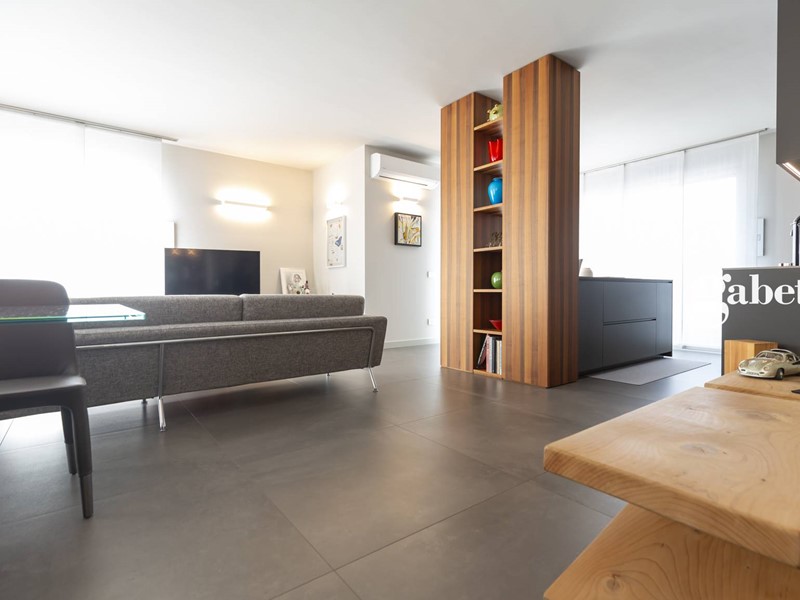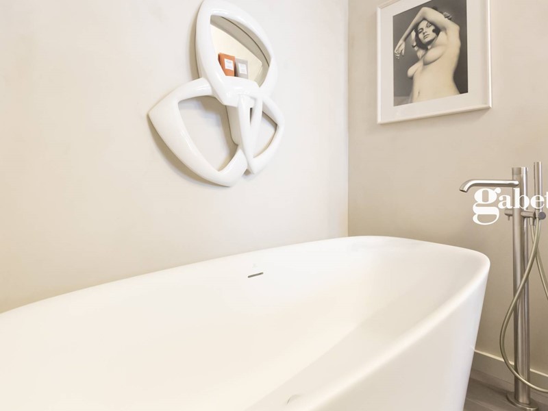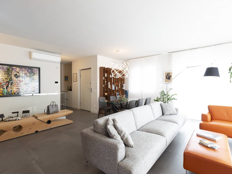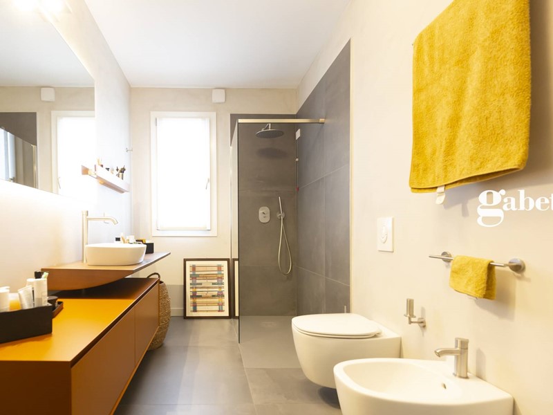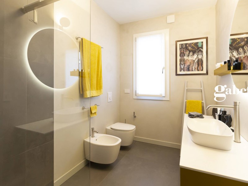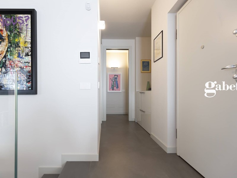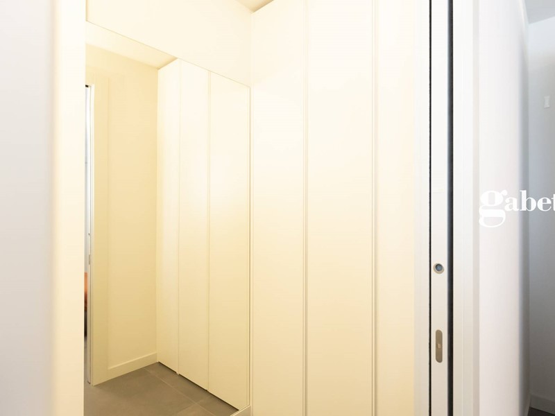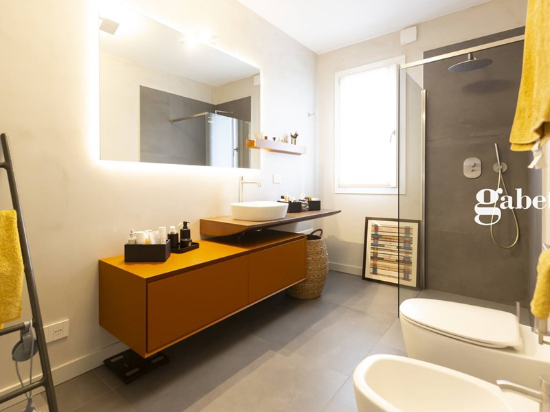 Greès in grandi formati, sanitari sospesi, rubinetteria di alto standing qualitativo, porte raso muro Lualdi altezza 2.60 m rendono preziosa questa soluzione immobiliare.