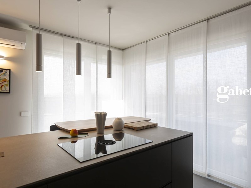 Quattro vetrate ad angolo scorrevoli caratterizzano la zona giorno. Il terrazzo è illuminato ed è presente una zona idromassaggio che valorizza questo spazio esterno. La cucina ha un'isola centrale di design ed è molto funzionale. Sono presenti un'impianto di riscaldamento a pavimento e l'aria condizionata.Entrambi funzionano tramite una pompa di calore Daikin autonoma. Gli infissi garantiscono un elevato isolamento acustico e termico.