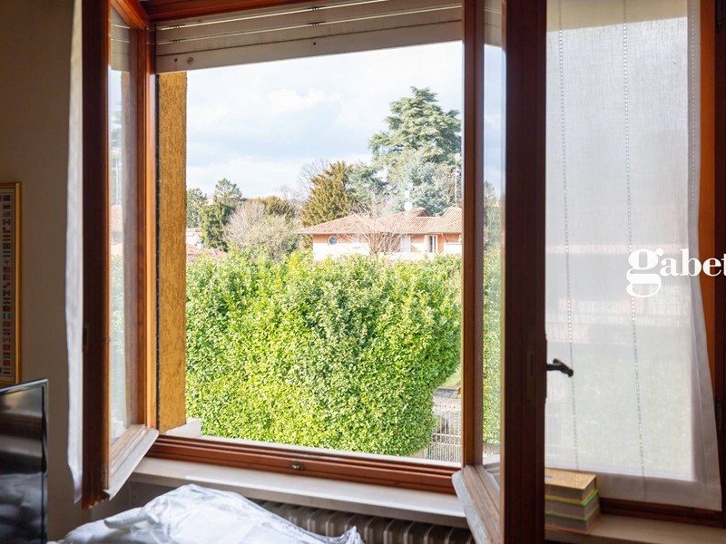 La cucina abitabile, invece, offre un ambiente spazioso e funzionale, dotato di tutti gli elettrodomestici necessari e di un'ampia zona pranzo. La villa è circondata da un ampio terrazzo, ideale per godere di momenti di relax all'aperto e ammirare la vista sul giardino di proprietà. Quest'ultimo, di generosa estensione, è presente sia sull'ingresso che sul retro della casa e offre una piacevole area verde dove trascorrere piacevoli momenti in compagnia di amici e familiari. La proprietà, inoltre, dispone di un box auto quadruplo ad 50.000,00 e di un'ampia cantina, garantendo così ampi spazi di parcheggio e di deposito. Lo stato di conservazione della villa è discreto, grazie alla cura e all'attenzione dei proprietari nel mantenere la casa in ottime condizioni. Gli infissi e le finestre sono in legno e garantiscono una buona coibentazione termica e acustica, rendendo l'ambiente sempre confortevole e silenzioso. L'abitazione è esposta su tutti i lati, nord, sud, est e ovest, garantendo così un'ottima luminosità naturale in ogni momento della giornata. Il sistema di riscaldamento è autonomo e alimentato a metano, garantendo un'ottima efficienza e un notevole risparmio energetico. In sintesi, si tratta di una villa di grande fascino e pregio, ideale per chi desidera uno stile di vita raffinato e confortevole, in una posizione strategica e tranquilla.