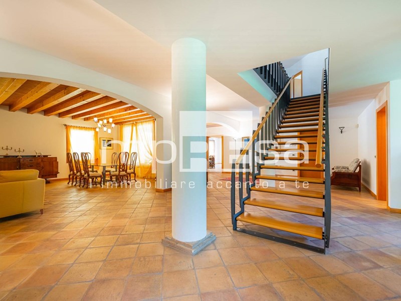 - piano terra: portico, ingresso, salone con scenografica scala di accesso al piano superiore, pranzo, cucina, antibagno e bagno, magazzino e lavanderia;