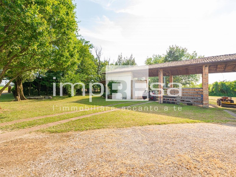 Sullo scoperto insiste un edificio in laterizio e legno composto da magazzino e portico.